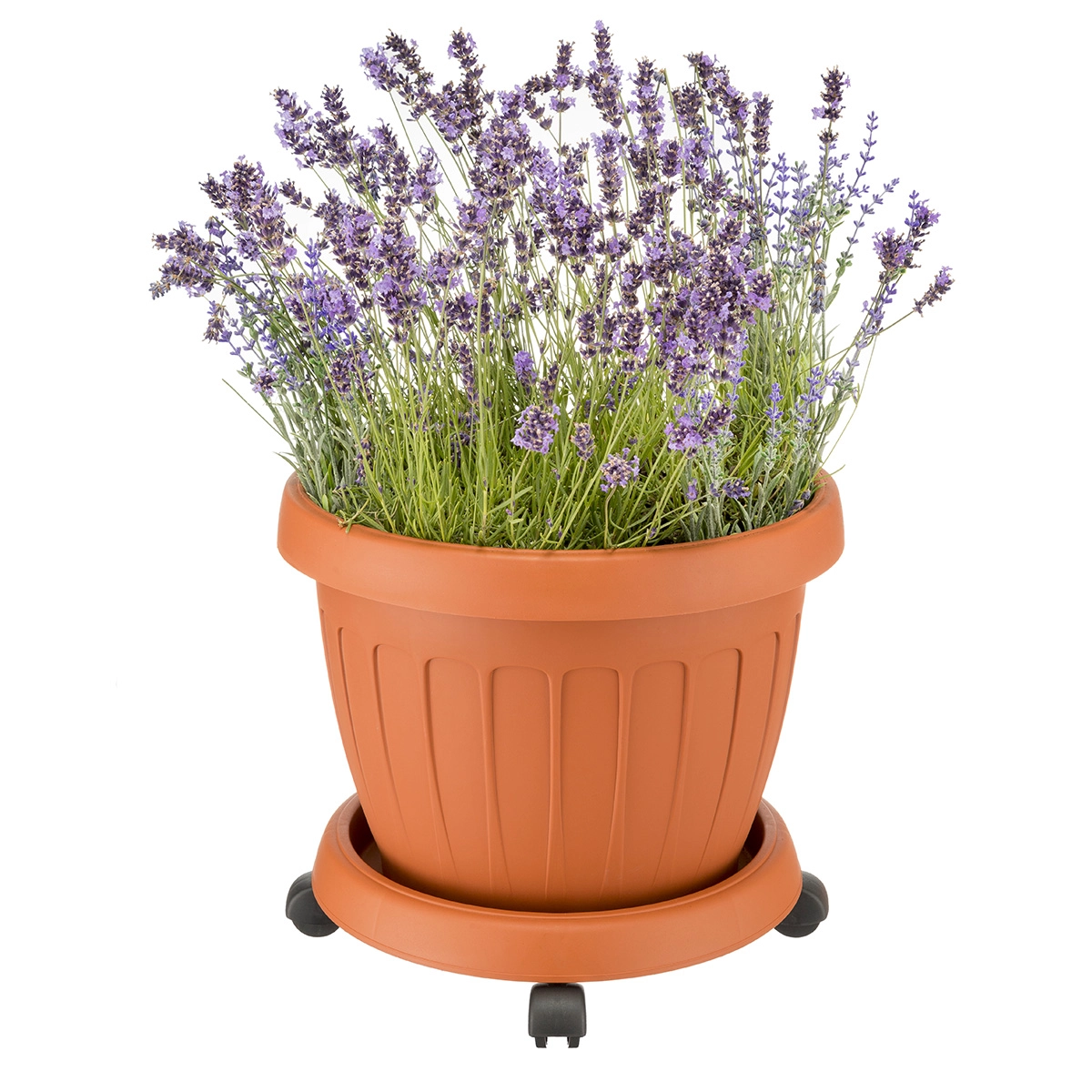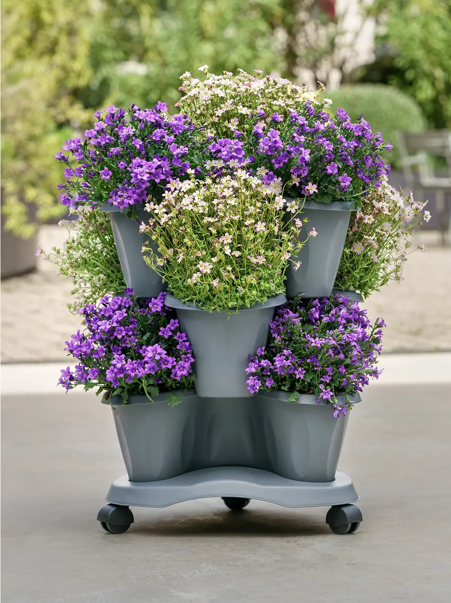 Il sottovaso con ruote per il vaso Trifoglio è studiato per spostare i vasi impilabili.