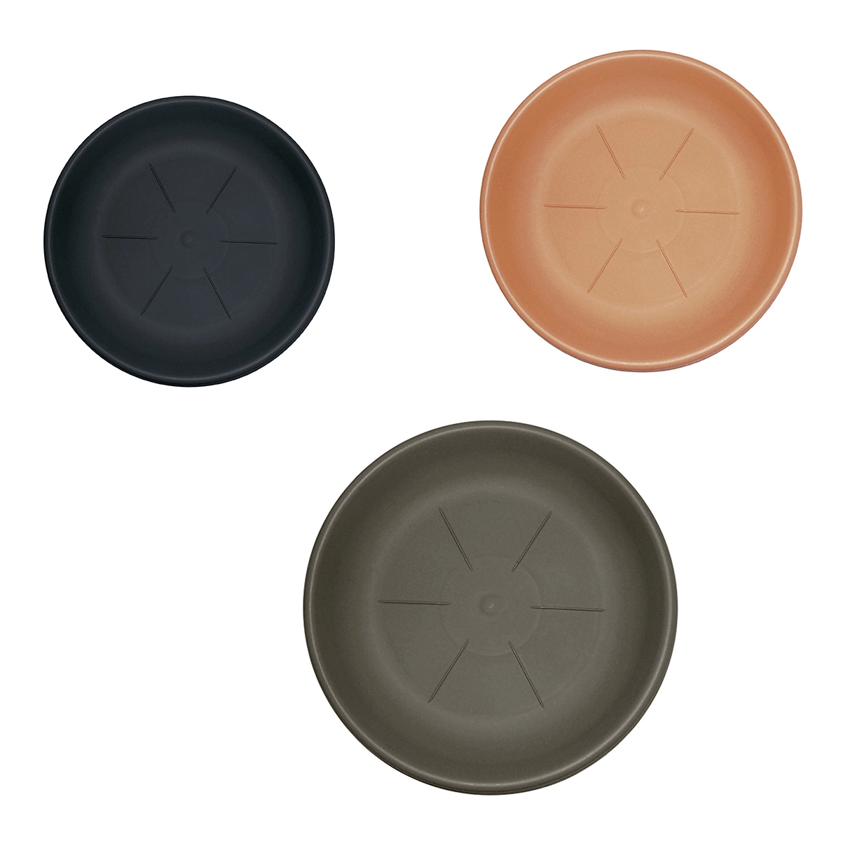 I sottovasi rotondi sono proposti in più misure per adattarsi a ogni tipo di vaso.