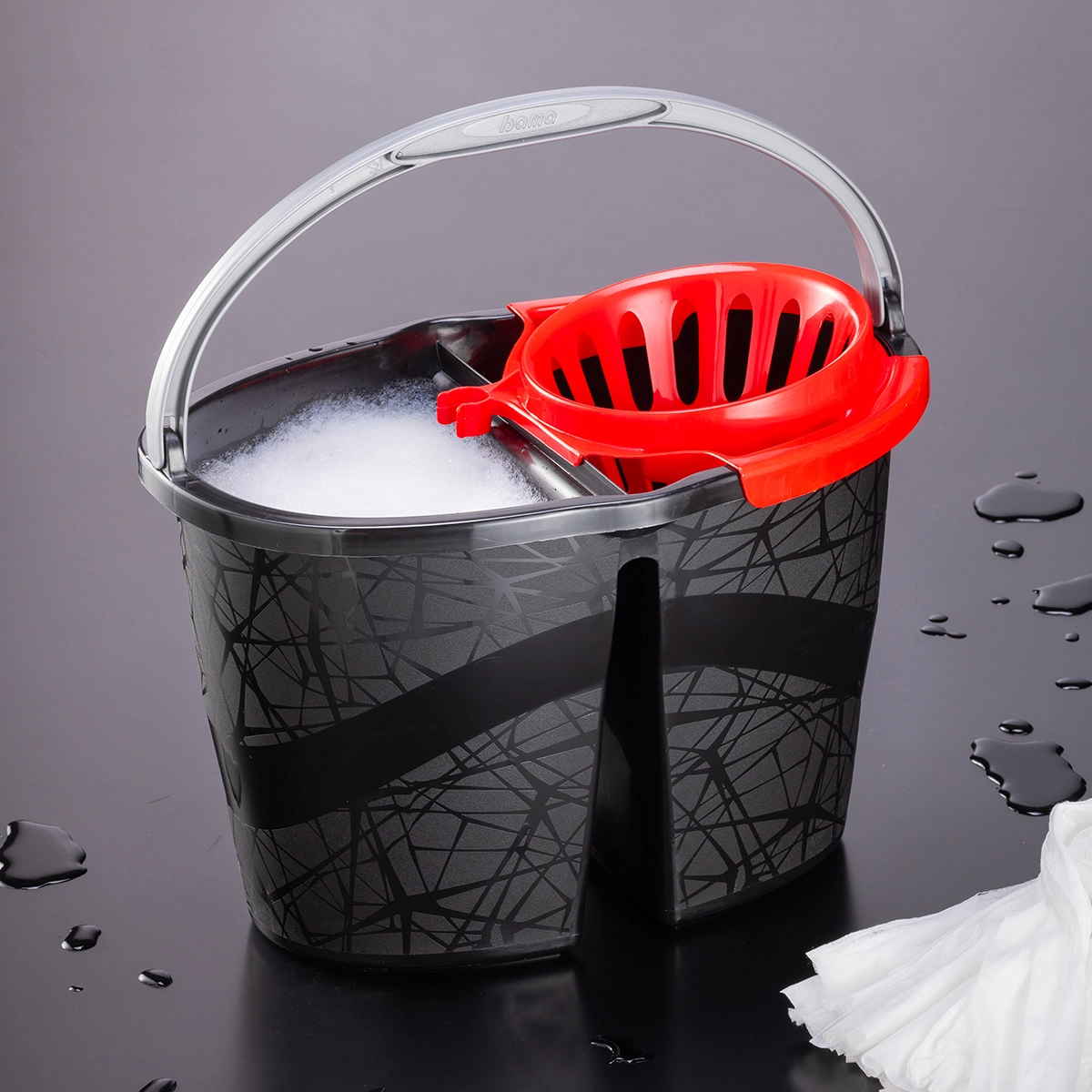 The two separate compartments for clean and dirty water help optimize daily cleaning. The outer surface is enhanced by an elegant, non-slip texture.