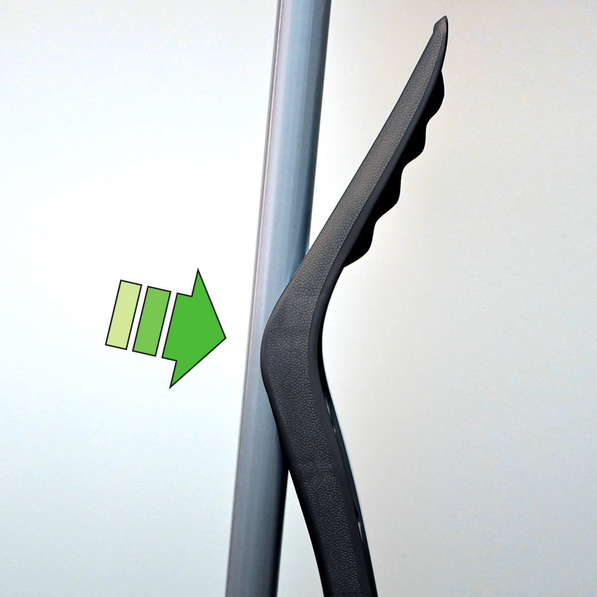 The integrated broom holder ensures tidiness and practicality. The wide surface and rubber edge ensure effectiveness on all types of flooring.