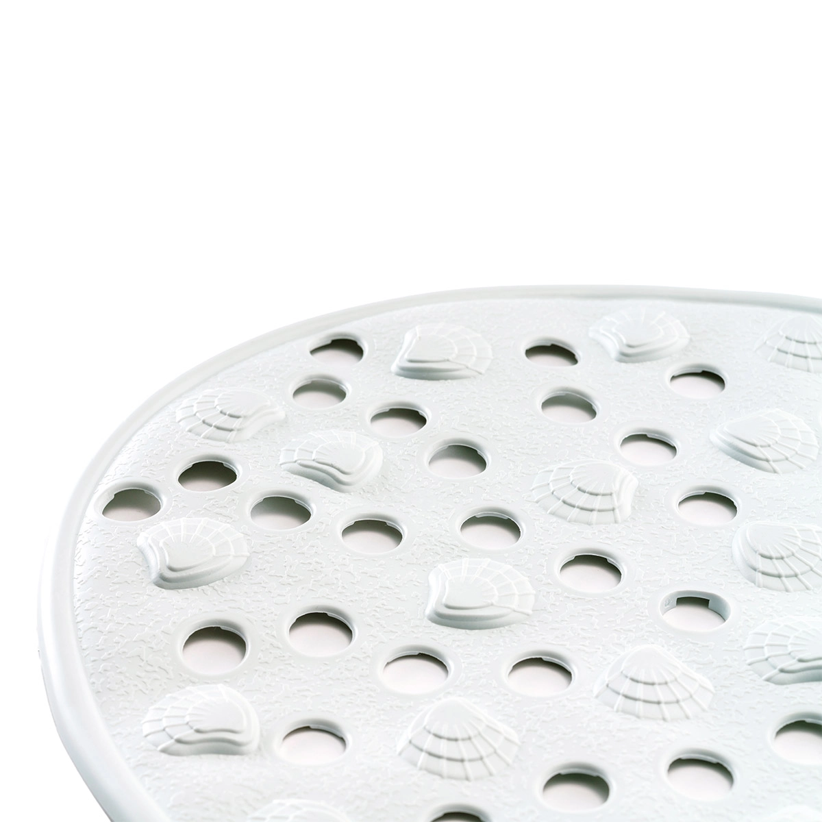 White bath mat with high-grip suction cups and anti-mold surface, ideal for ensuring safety and hygiene in any bathroom.
