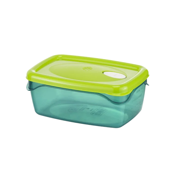 Airtight container for raw or cooked food, square in shape.