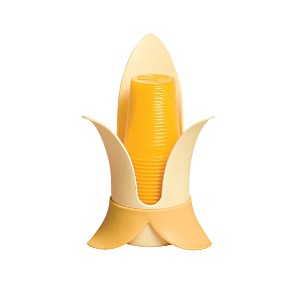 The base supports and contours of this plastic cup holder resemble half-open leaves. Hence the innovative yet stable and enveloping design.