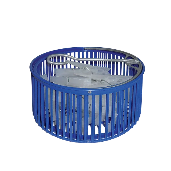 Available in different colors, complete with clothespins. The basket is made from 100% recyclable resins.