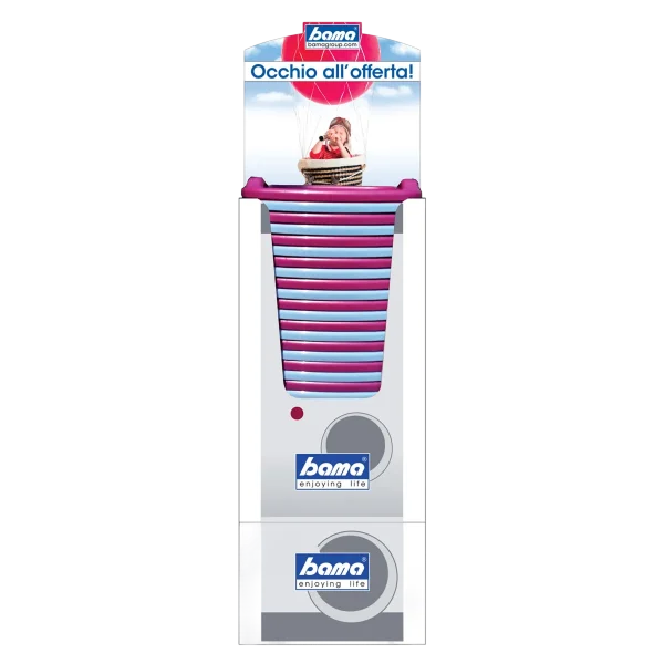 Baby-sized cardboard display for 24 cleaning trays designed to catch the eye at any point of sale.