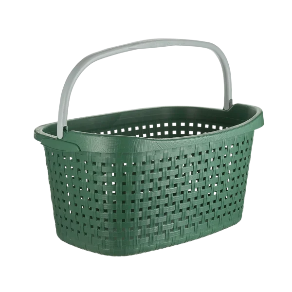 Lightweight and spacious plastic garden basket with central handle and side handles for easy transport. 5-year warranty.
