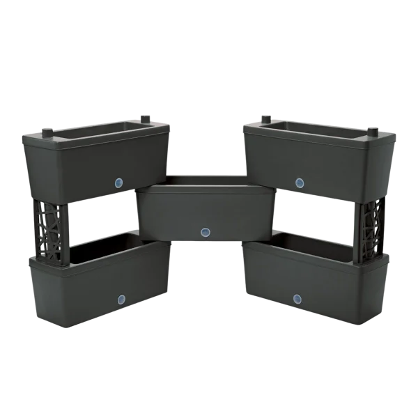 Set of 5 modular planters with a self-watering system with communicating vessels and level indicators. The ideal solution for creating colorful flower walls, herb dividers, vertical gardens, or vegetable gardens. 5-year warranty.