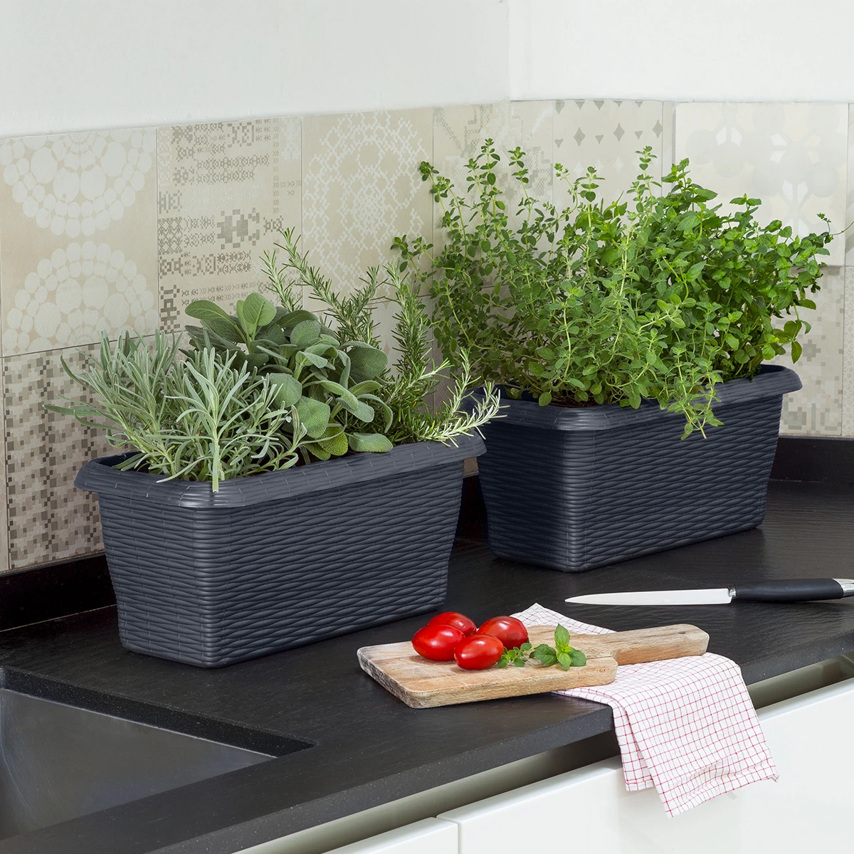 Rectangular plastic planter, ideal for making terraces, verandas, or gardens unique.