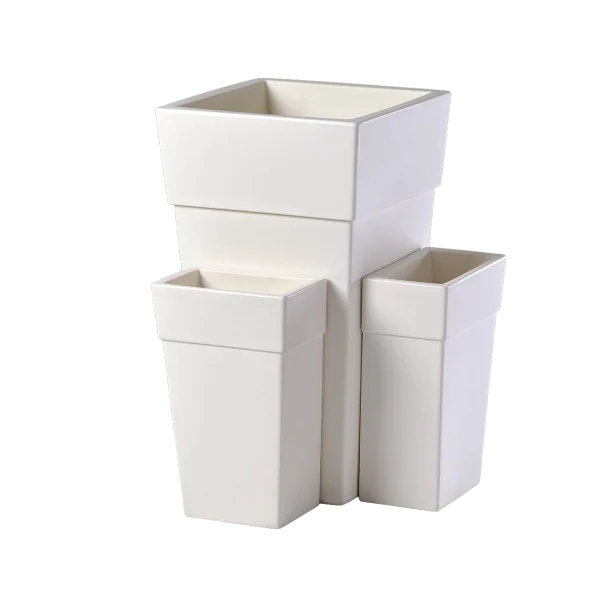Tall square pot with a modern design. Lightweight, ideal for outdoor use.