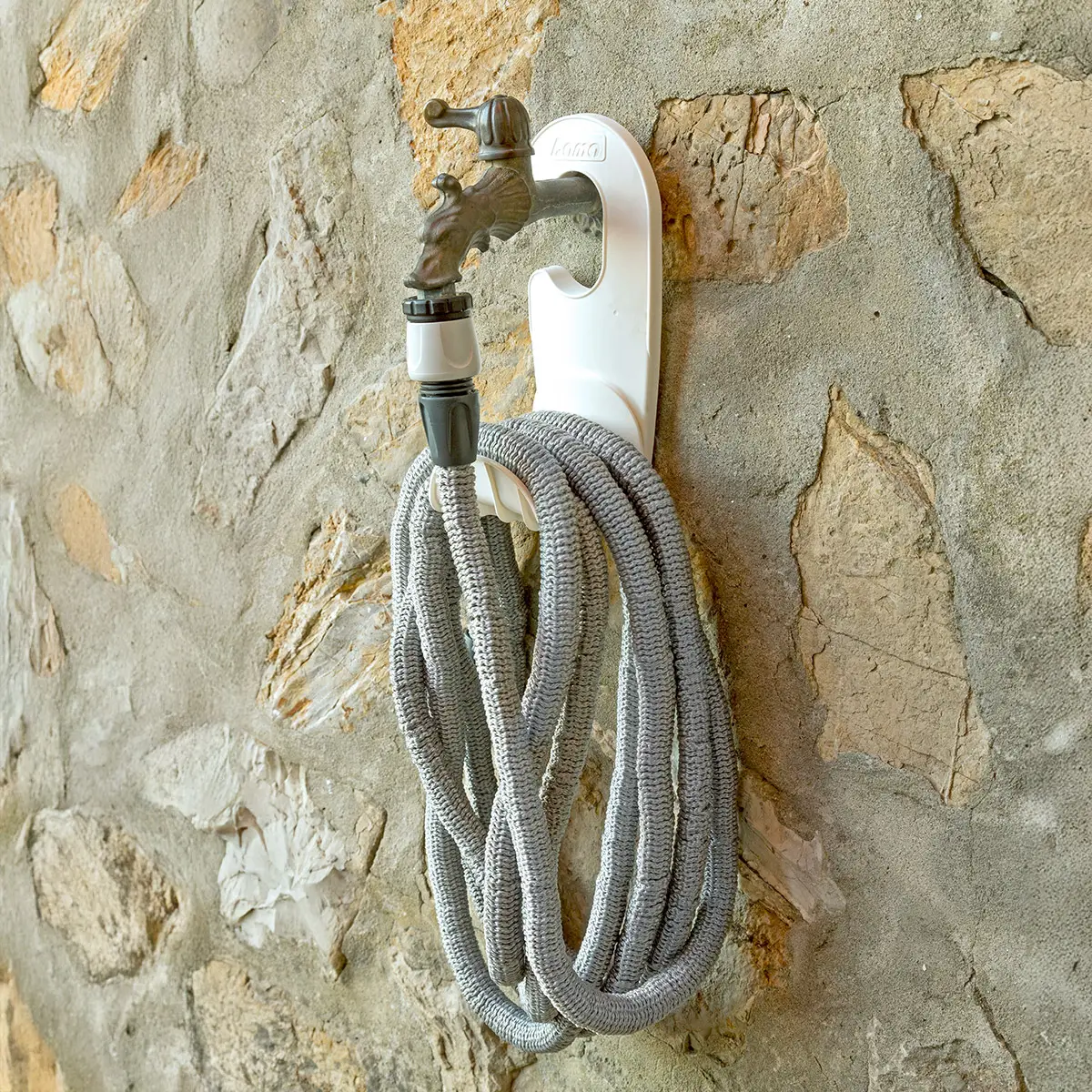 Gancio avvolgitubo pronto all’uso, adatto a ogni rubinetto e ideale per tenere in ordine il giardino senza forare muri o piastrelle. L’accessorio che non può mancare in ogni casa. Garantito 5 anni. Prodotto con tecnologia a stampaggio rotazionale.