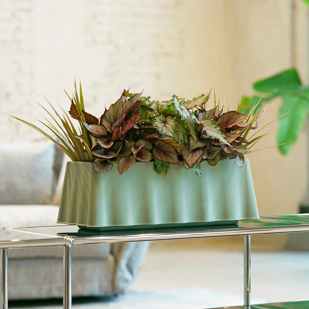 Disponibile in 3 varianti di colore, la fioriera Brezza è realizzata con resina resistente ai raggi UV e riciclabile al 100%.