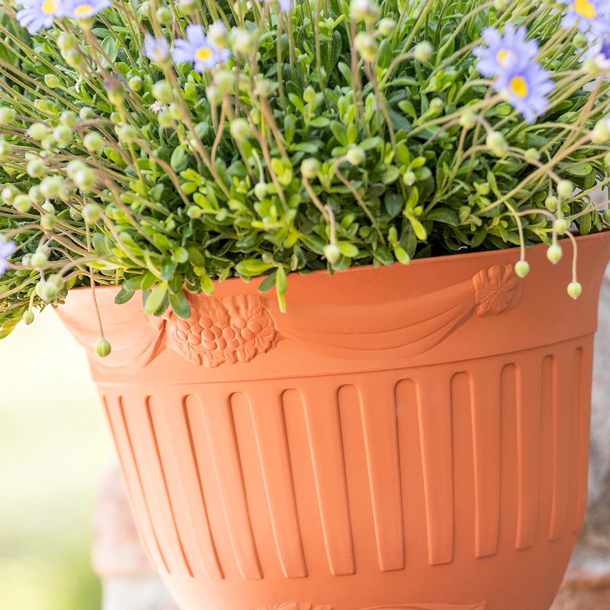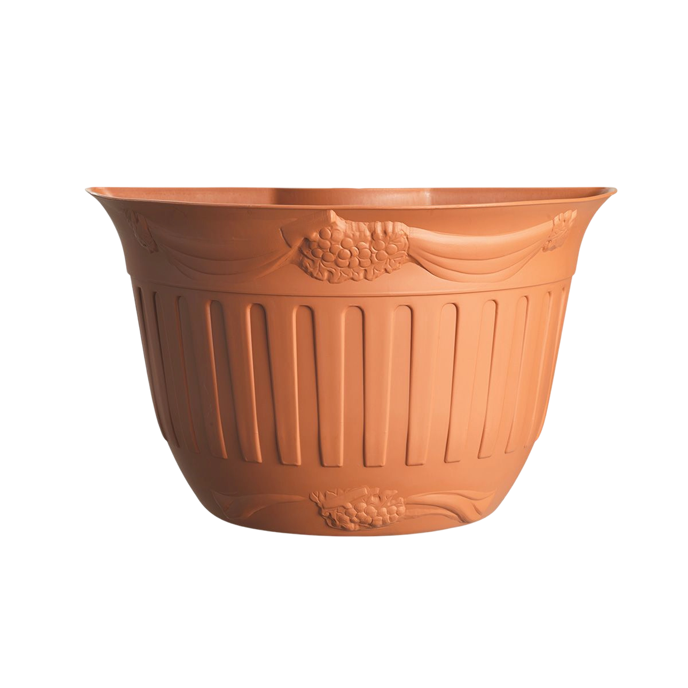Vaso in resina color terracotta leggero e robusto, resistente a urti e raggi UV.