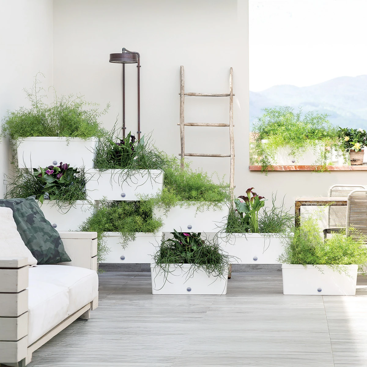 Set di 5 fioriere componibili con sistema di autoirrigazione.