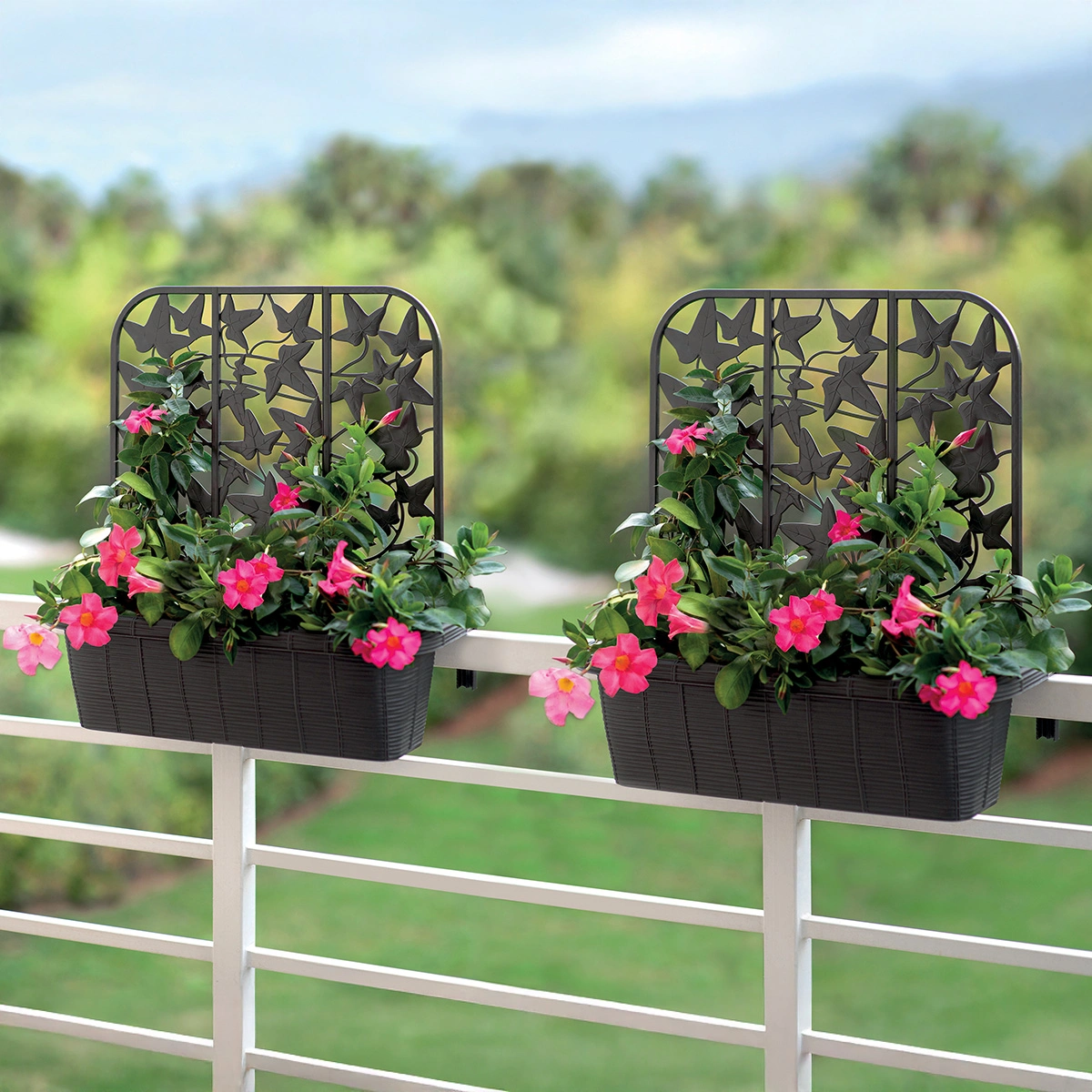 Set di 2 fioriere da ringhiera con spalliera decorata e texture che richiama i cesti di vimini.