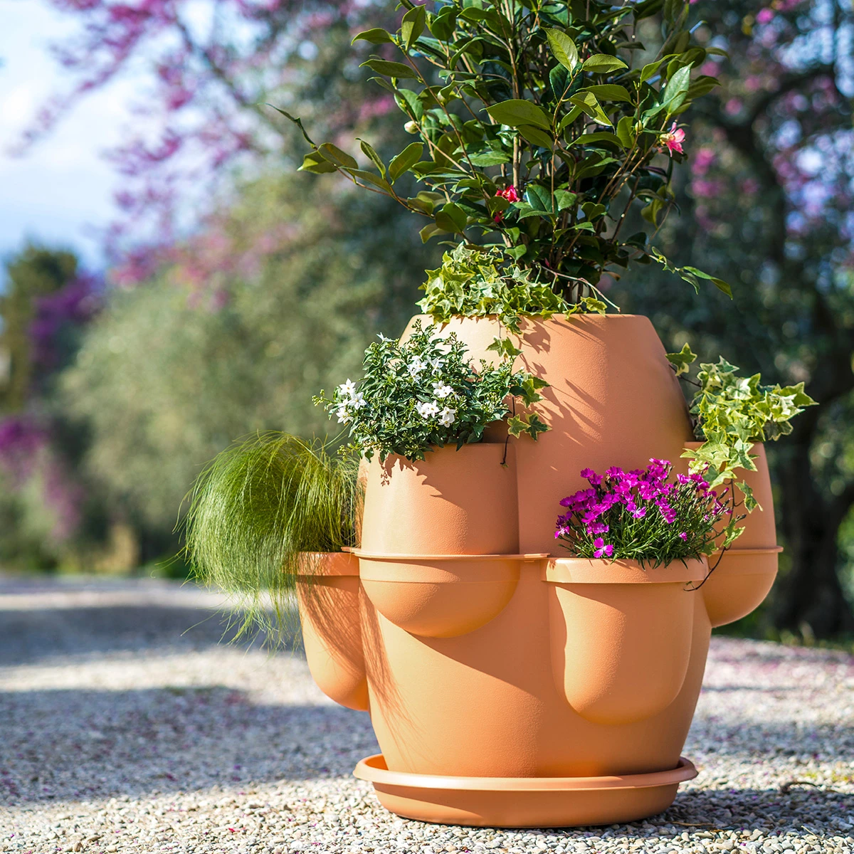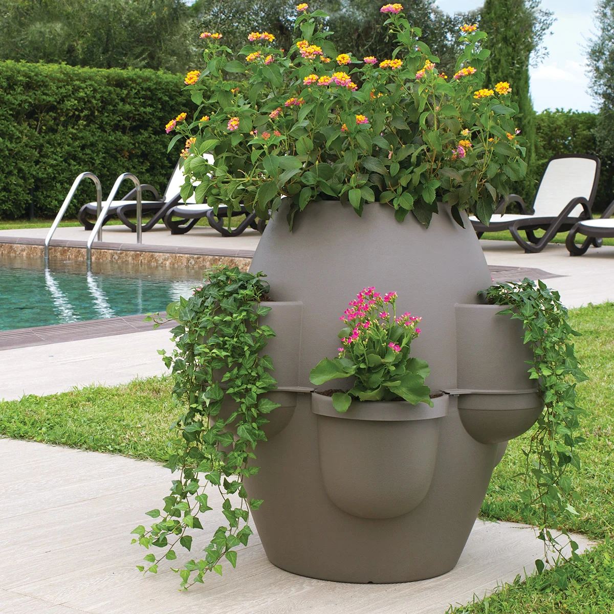 Orcio in plastica con bocca centrale, 6 tasche perimetrali e sottovaso. Un richiamo all’omonimo vaso toscano perfetto per creare scenografiche composizioni di fiori e piante. Garantito 5 anni.