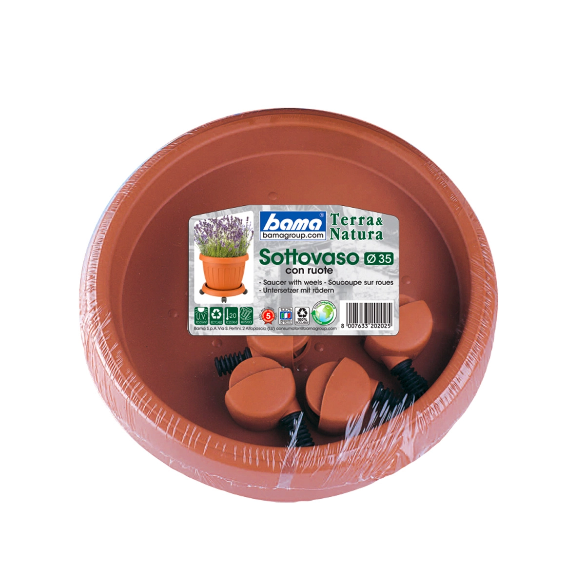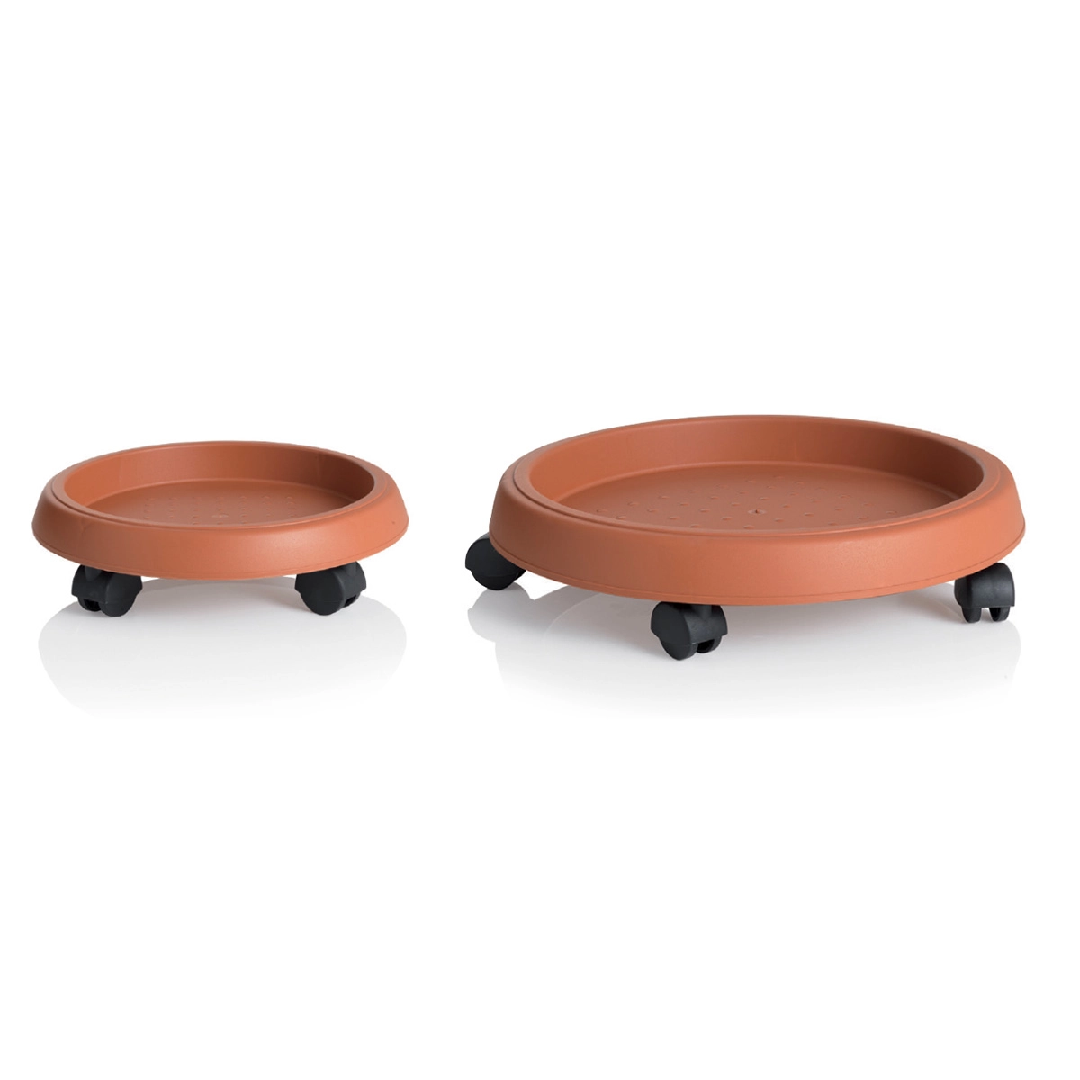 Sottovasi con ruote, robusti e facili da spostare. Disponibili in 4 misure, ora anche con diametro di 40 cm per i vasi grandi. Garantiti 5 anni.