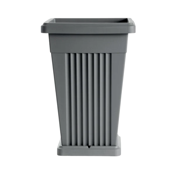Vasi in plastica alti e slanciati con sottovasi a riserva d’acqua. Perfetti da posizionare a coppia all’entrata di ambienti domestici e lavorativi per incorniciare gli ingressi con un tocco floreale signorile. Garantiti 5 anni.