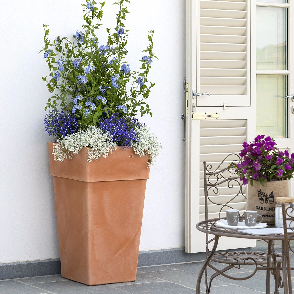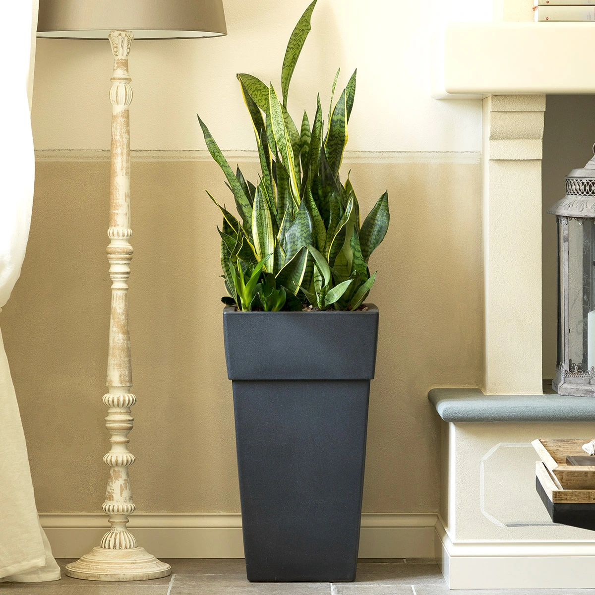 Vaso alto quadrato dal design moderno. Leggero, ideale per esterni e garantito 10 anni. Il giusto mix tra estetica e funzionalità. Prodotto con tecnologia a stampaggio rotazionale.