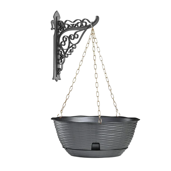 Vaso ciotola da appendere con sottovaso, catenella e supporto per il fissaggio alla parete. Un set completo e pronto all’uso per posizionare fiori e piante ovunque. Garantito 5 anni.