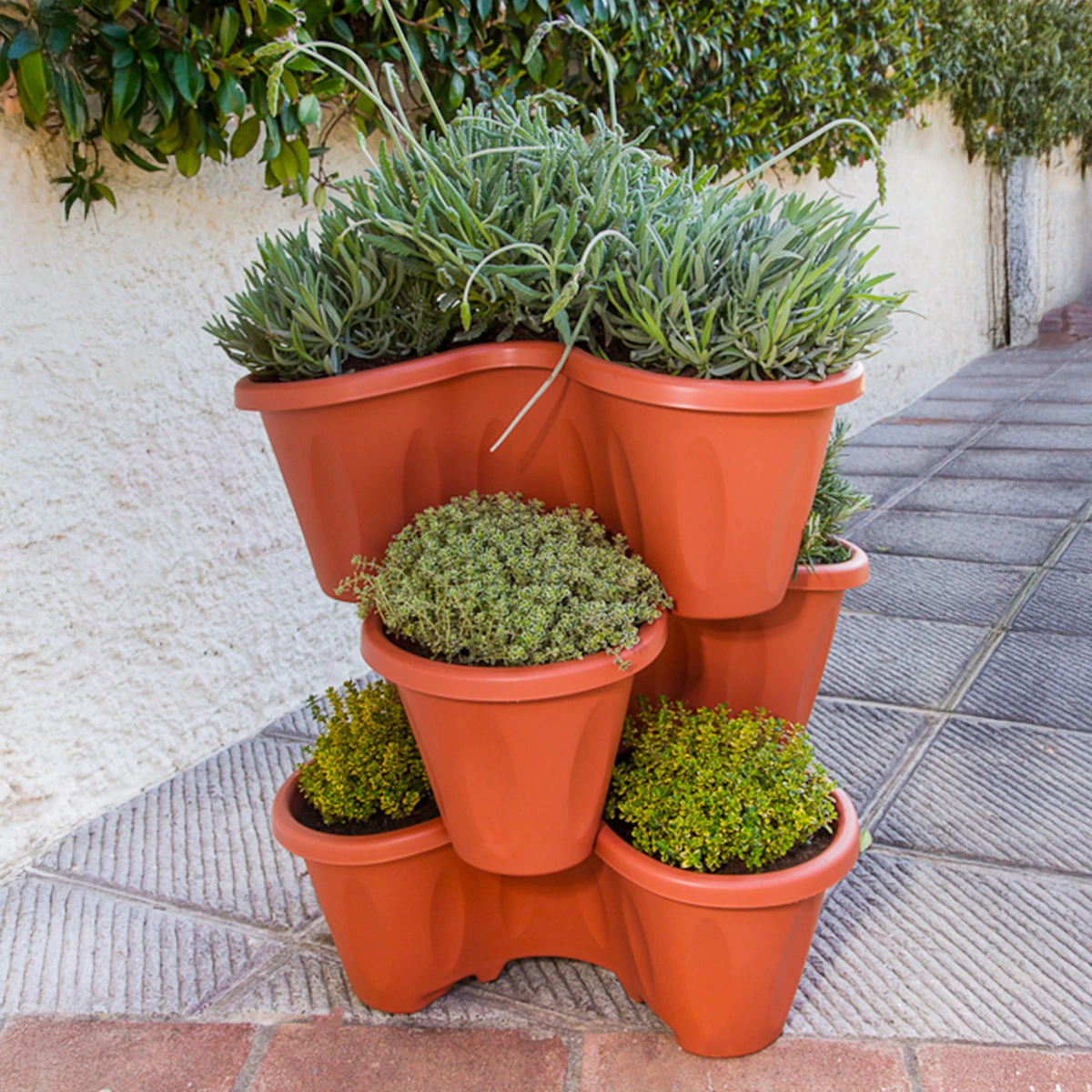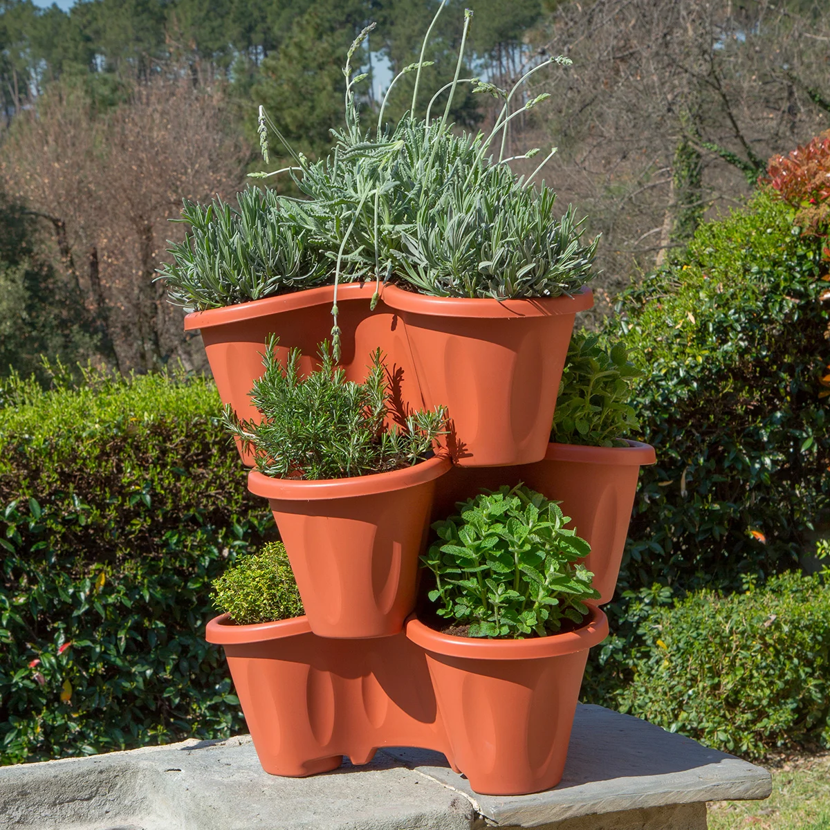 Versione maxi di Trifoglio, questo vaso impilabile in plastica è ideale per coltivare piante aromatiche, fragole e fiori su più livelli. Garantito 5 anni.