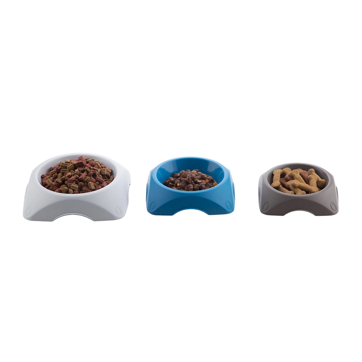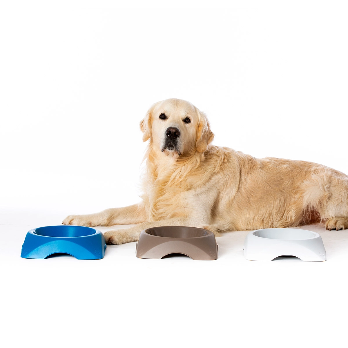Ciotola per cani e gatti con piedini antiscivolo e antiribaltamento realizzata in plastica resistente.