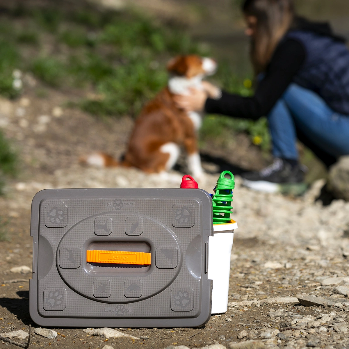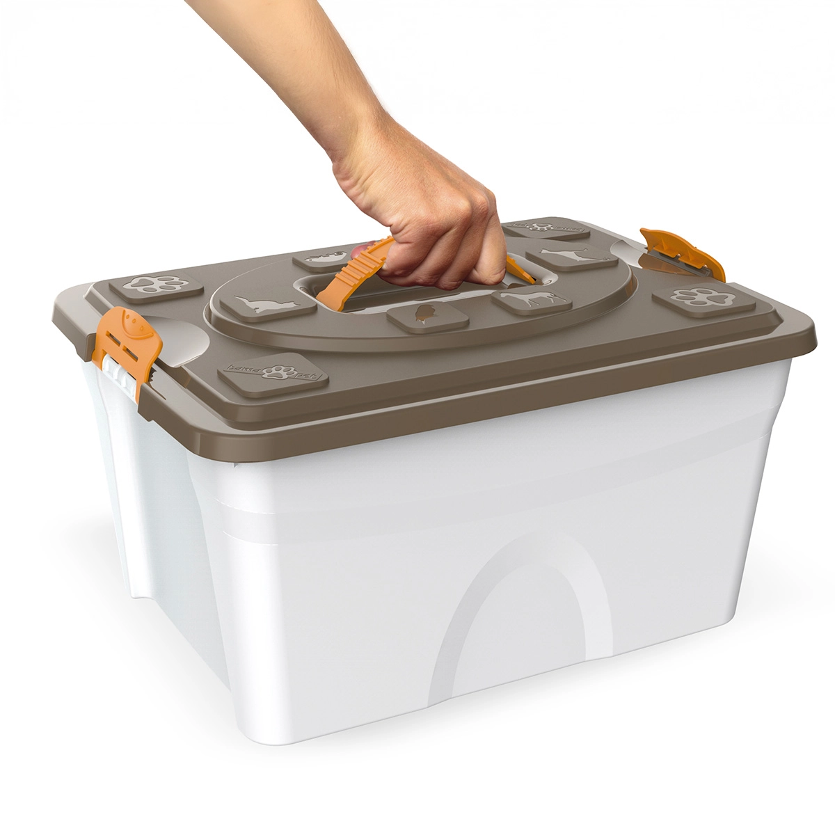 Contenitore in plastica resistente per organizzare e trasportare oggetti, cibo e accessori di cani e gatti. Utile anche per viaggi, fiere e mostre.