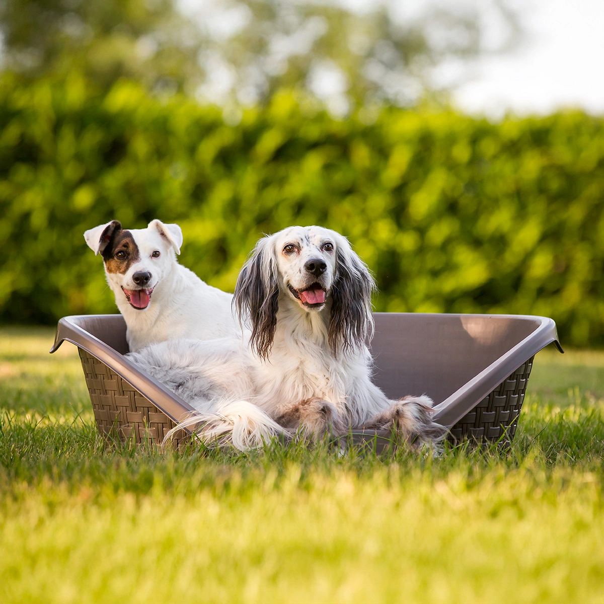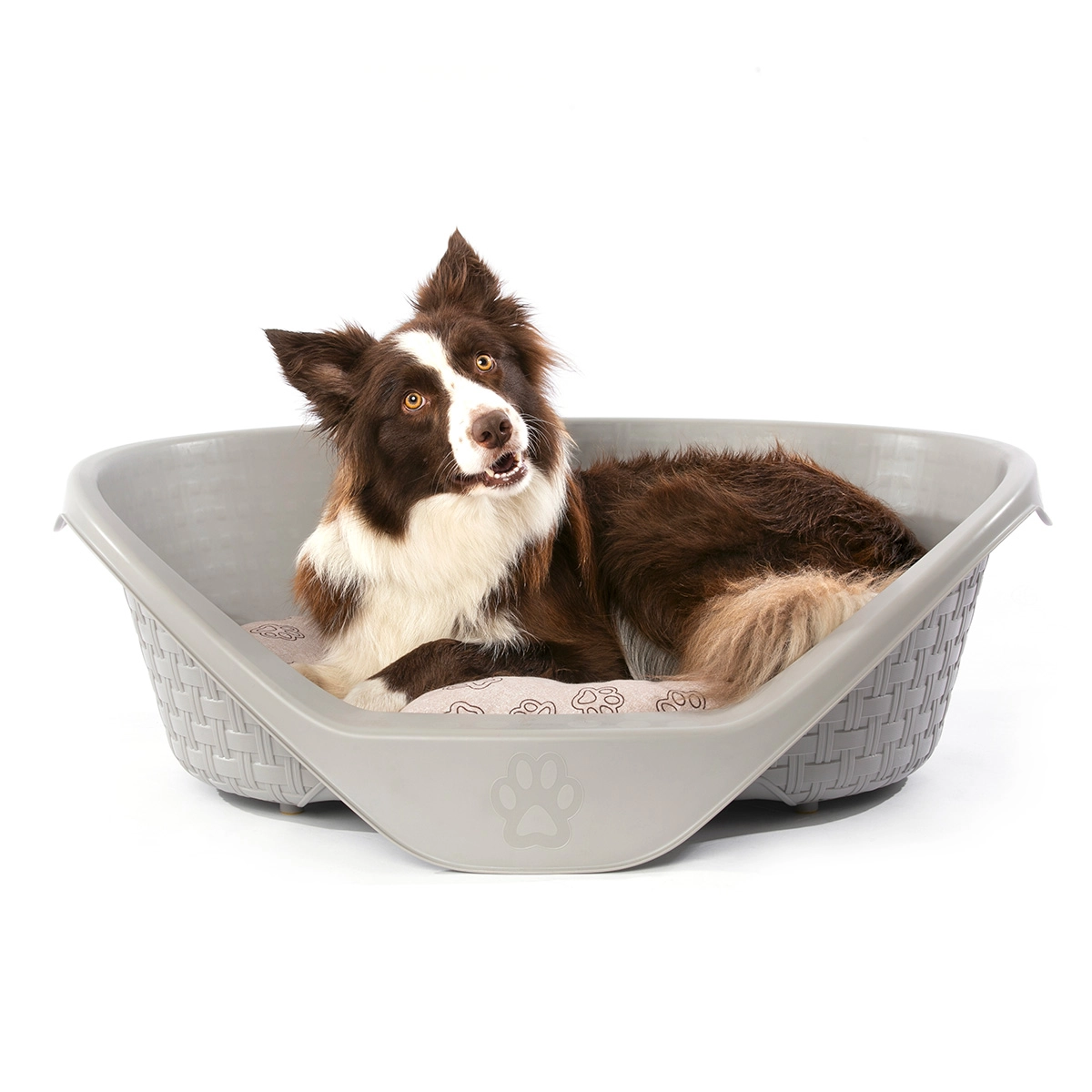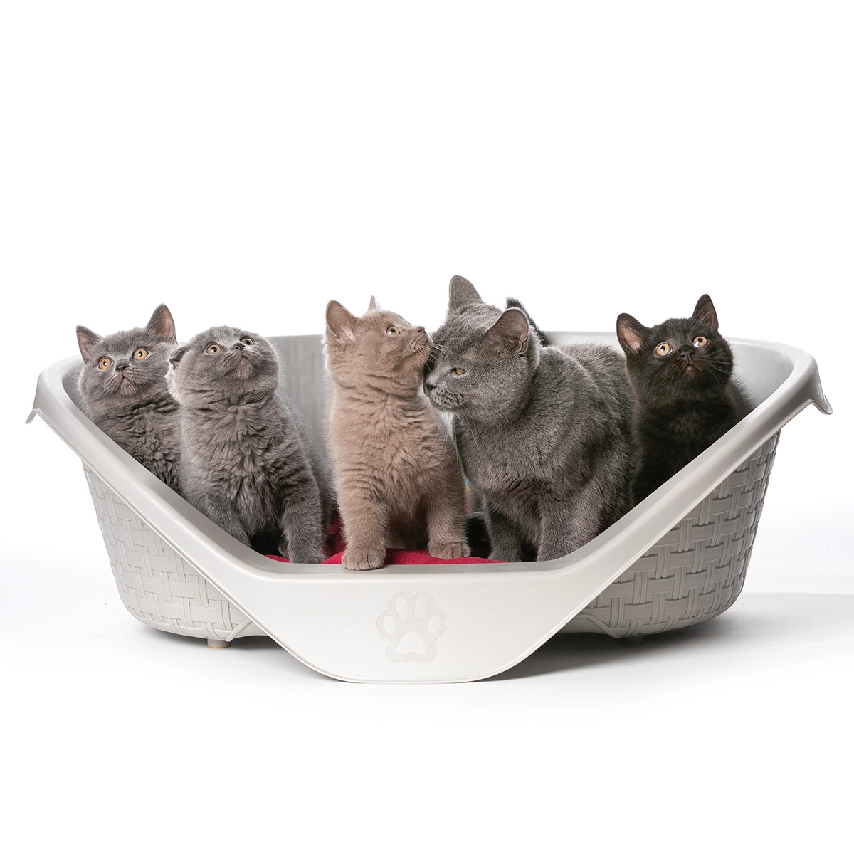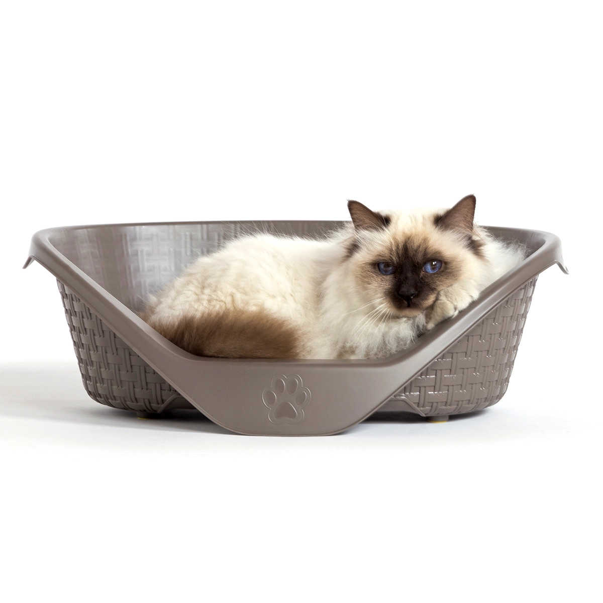 Lettino in plastica per gatti e cani di taglia piccola dotata di morbido cuscino.
