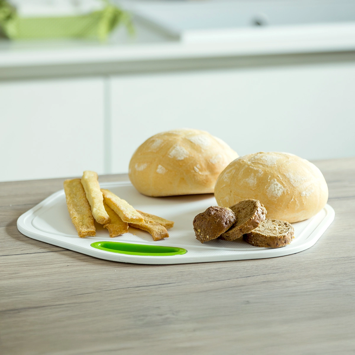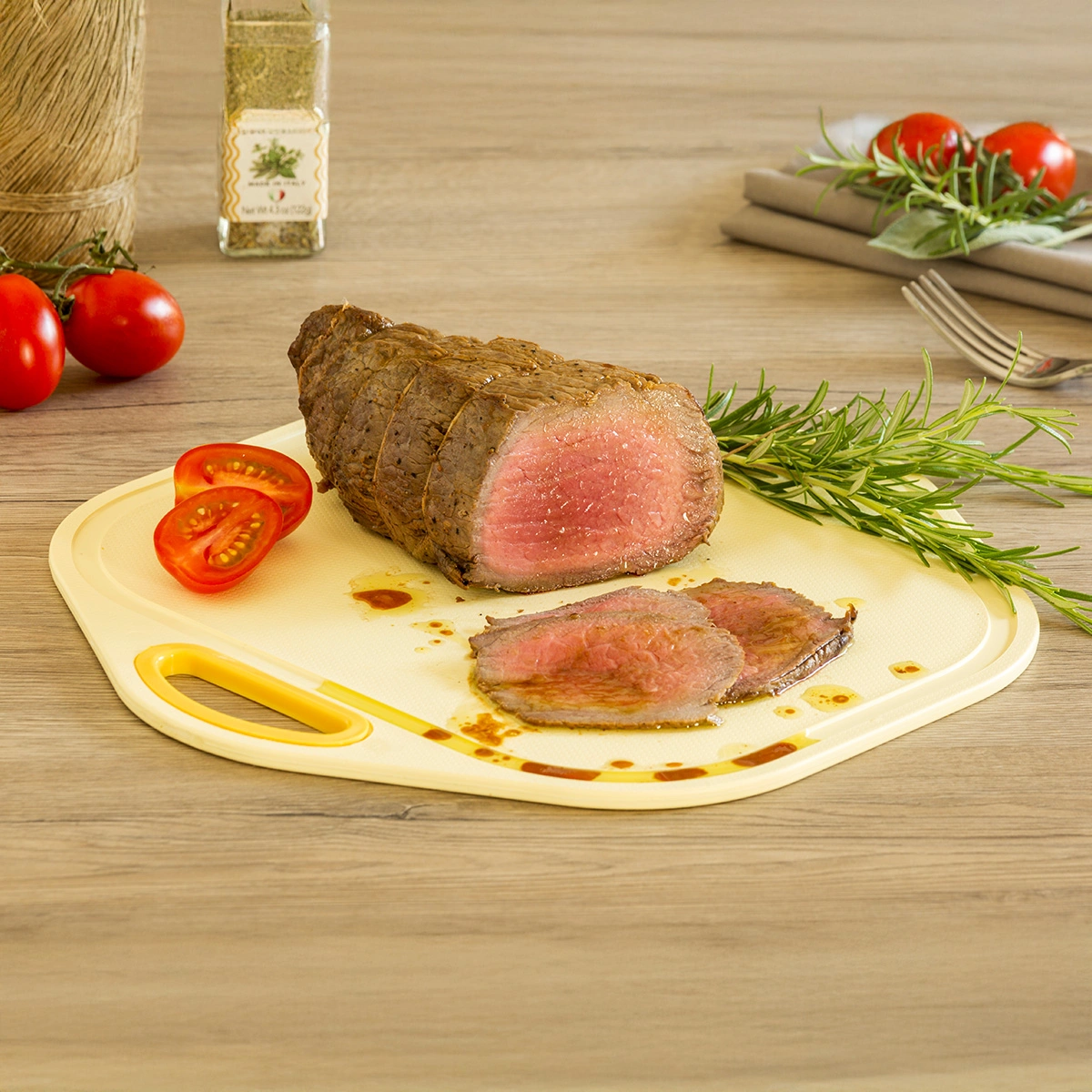 Disponibile in colori assortiti, è certificato come idoneo al contatto con gli alimenti, realizzato con resine atossiche e riciclabili al 100%.