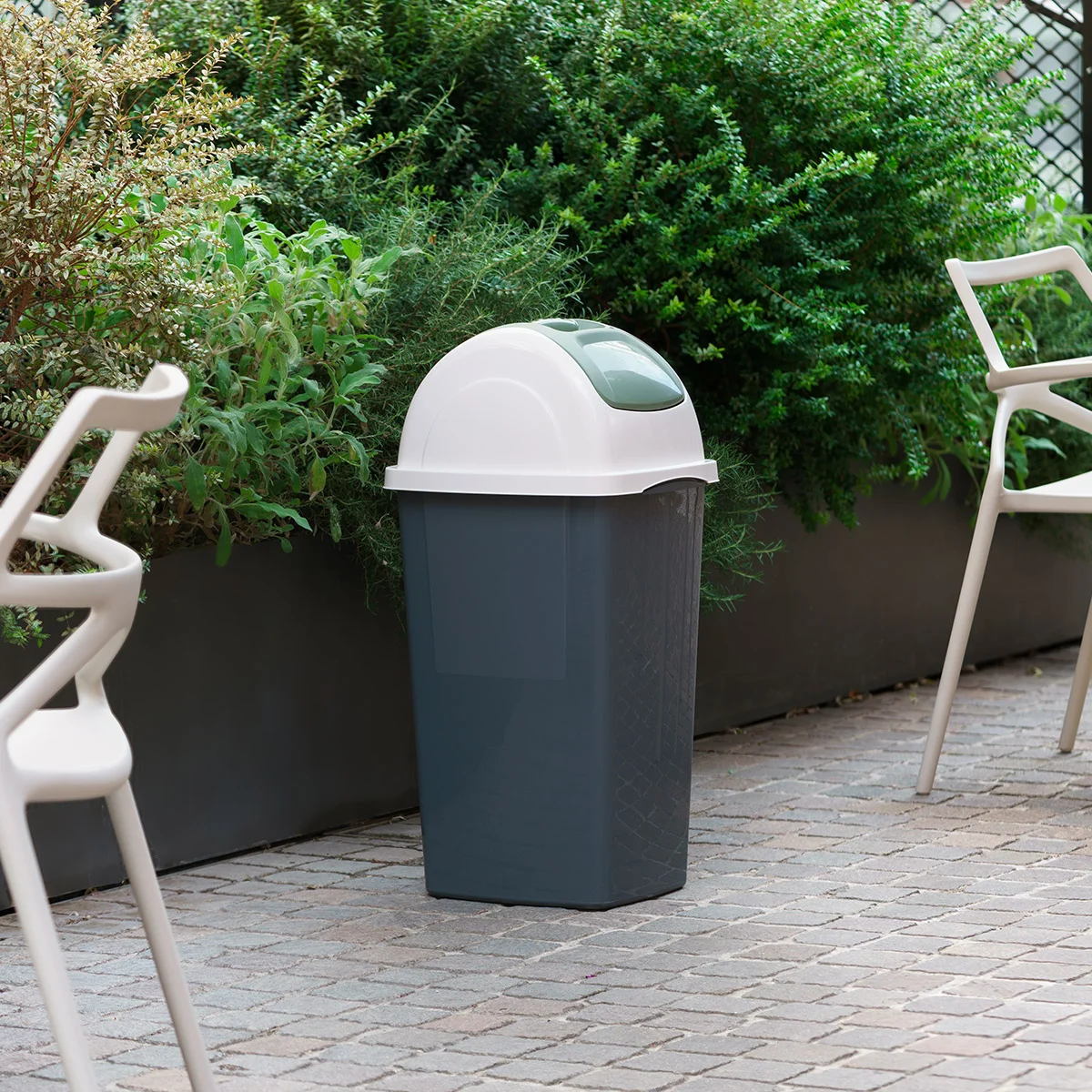 Il coperchio basculante facilita l’uso anche con le mani occupate e, grazie ai diversi colori, rende più intuitiva la differenziata.