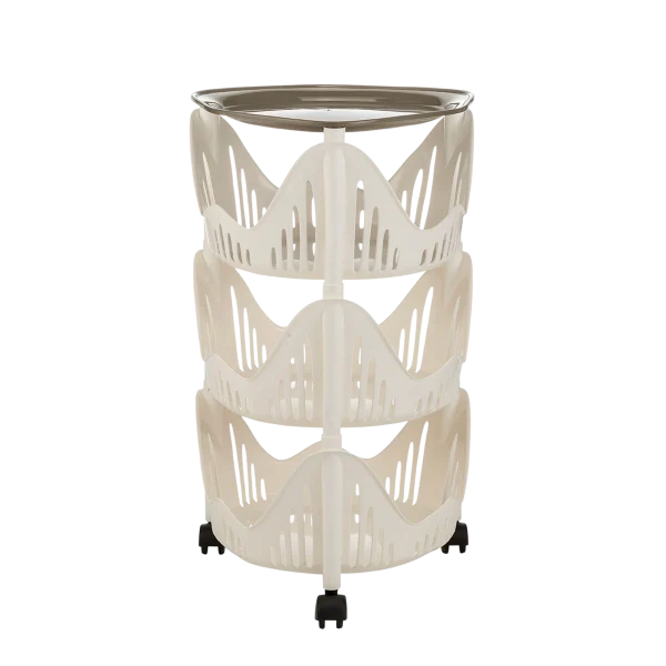 I 3 cestelli permettono di tenere in ordine alimenti, barattoli e utensili. Il top-vassoio è un piano d’appoggio in più. Le ruote consentono movimenti fluidi e veloci.