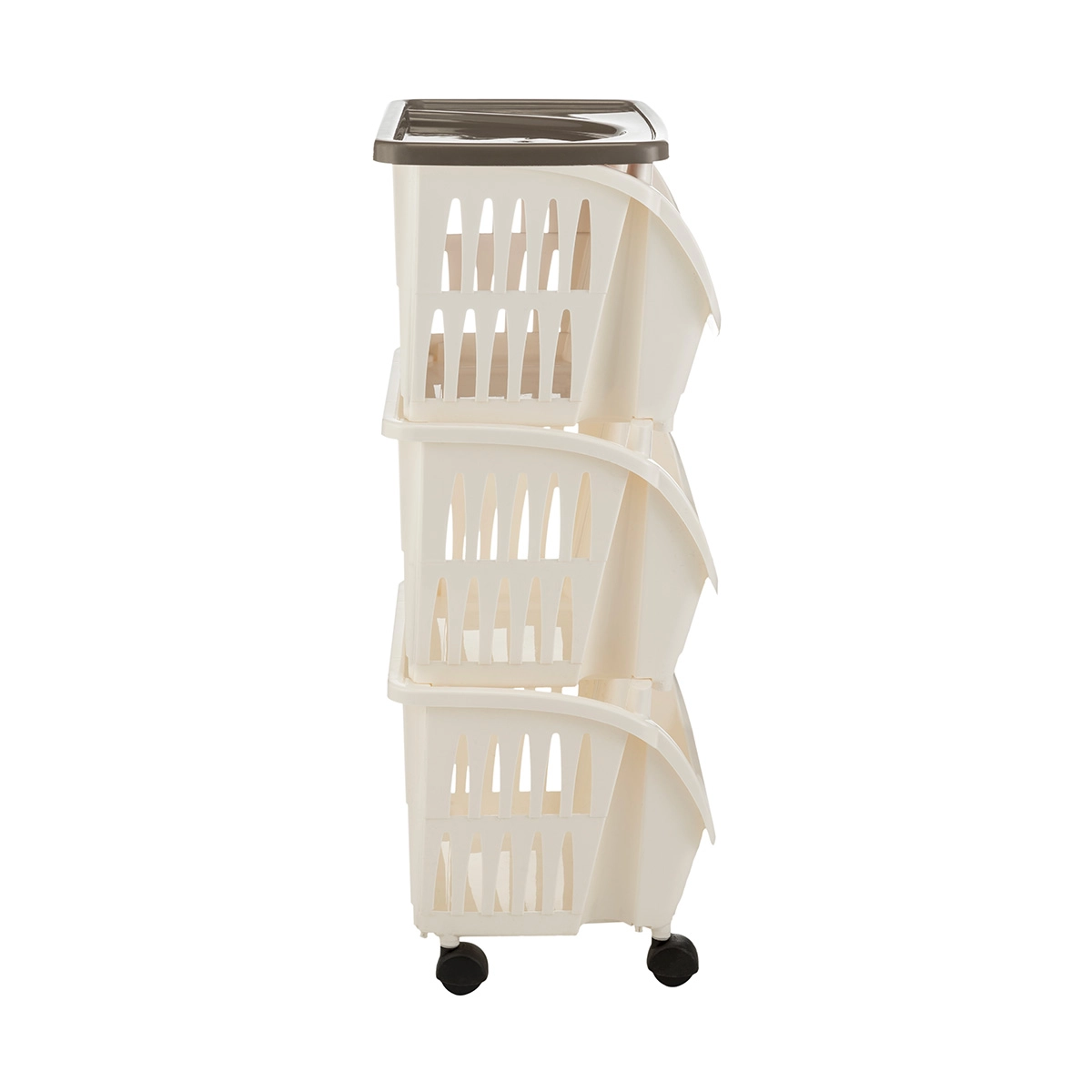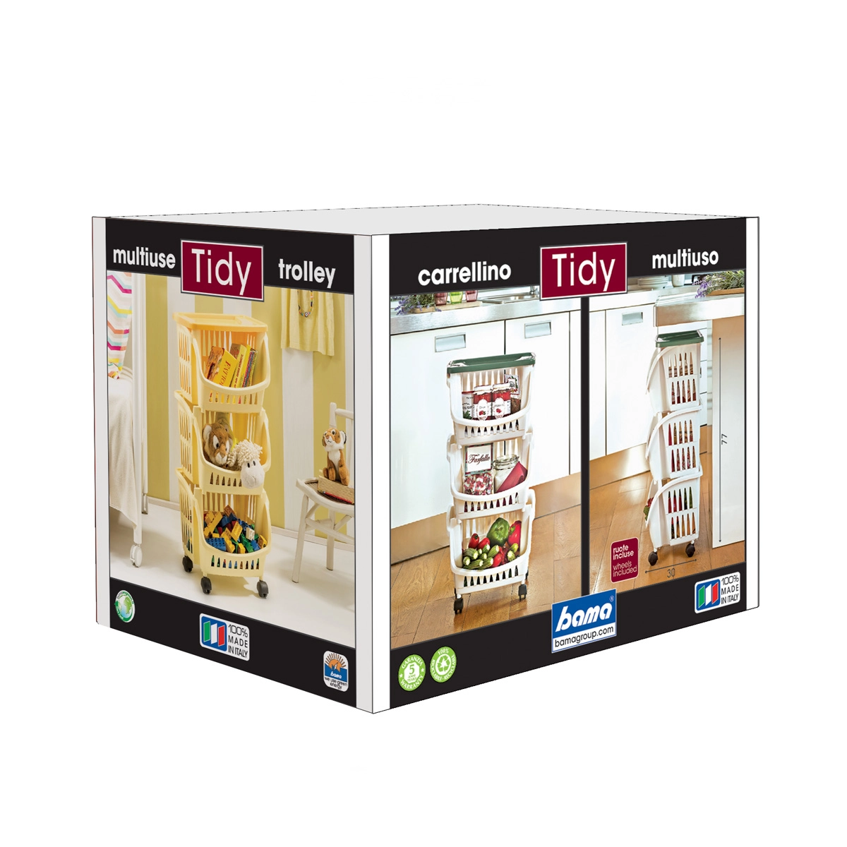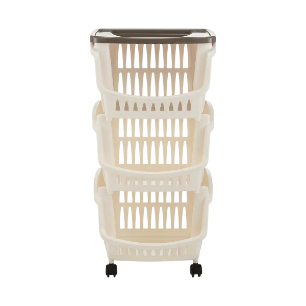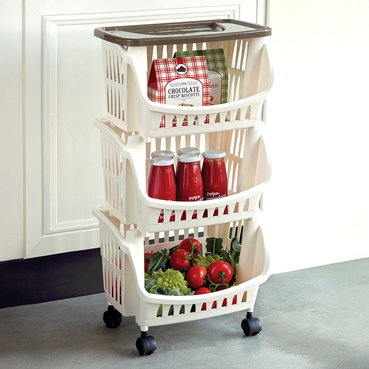 I 3 cestelli sono capienti e permettono di tenere tutto in ordine. Il top-vassoio è un piano d’appoggio funzionale. Le rotelle consentono spostamenti veloci.
