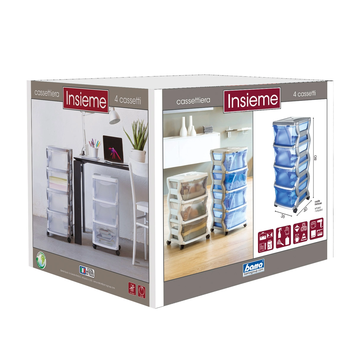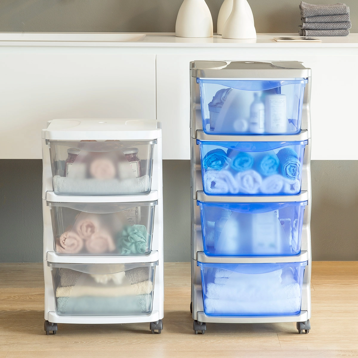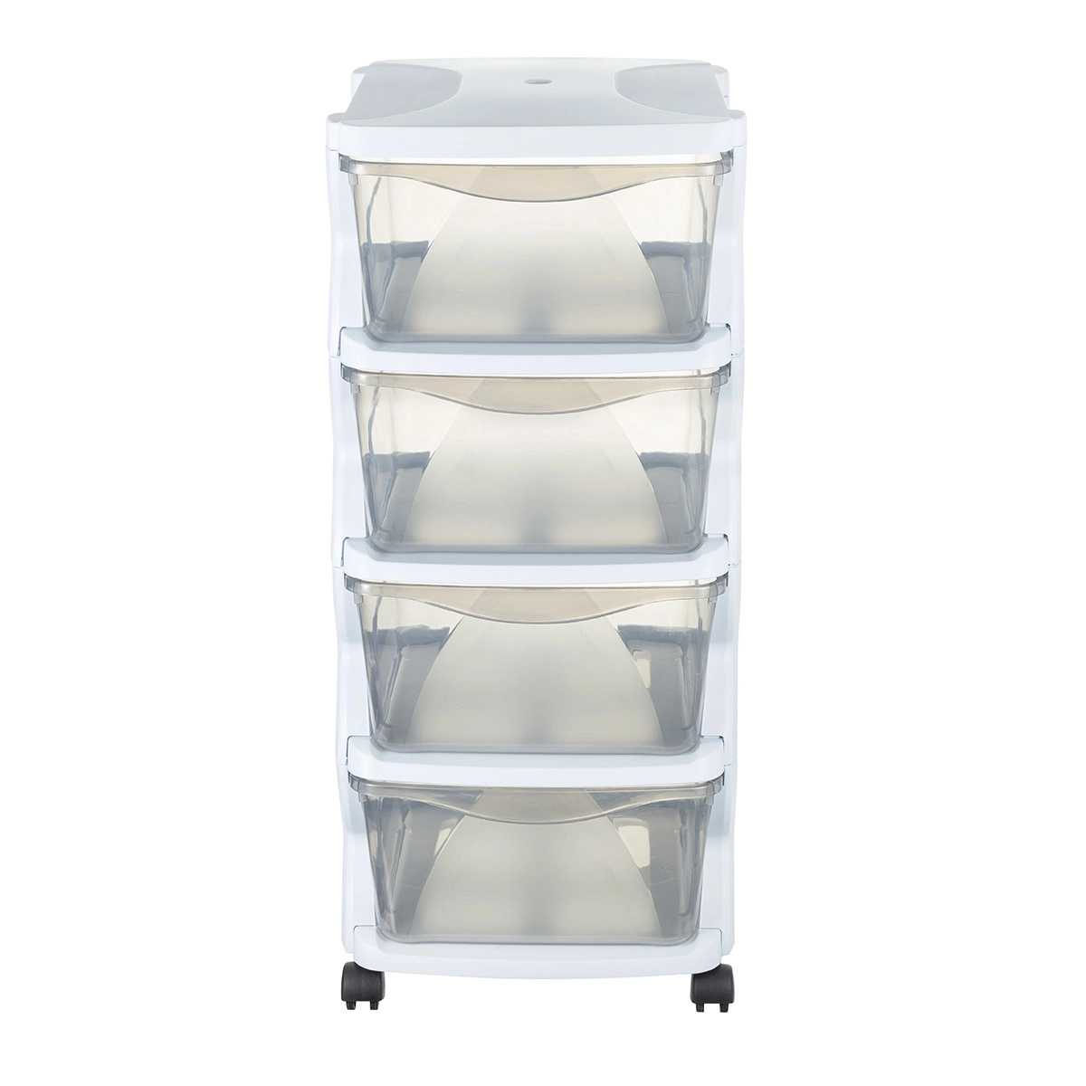 Cassettiera in plastica su ruote con 4 cassetti: perfetta per organizzare al meglio ogni stanza, dal bagno all’ufficio, con efficienza e praticità.