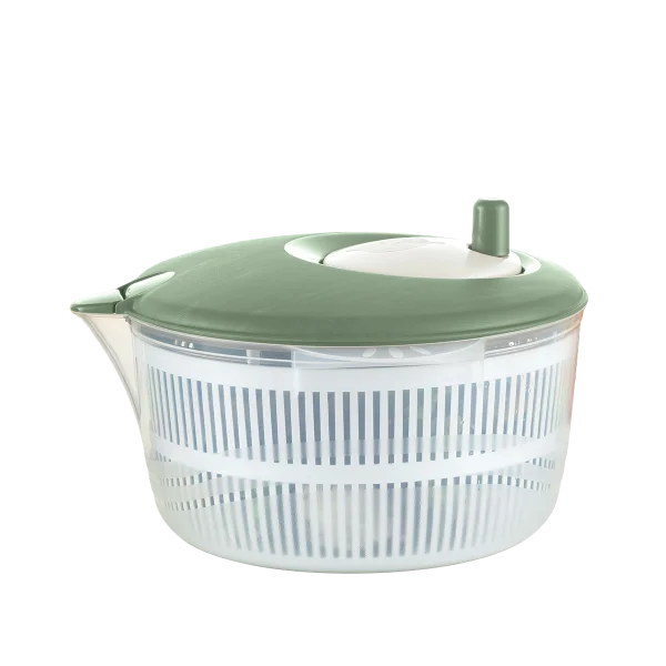 Centrifuga per lavare e asciugare l’insalata alla perfezione grazie al cestello rotante e al beccuccio che consente di eliminare l’acqua in eccesso.