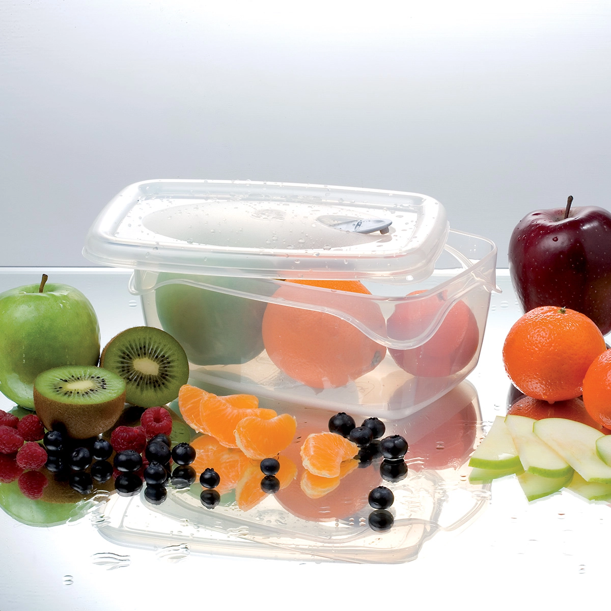 Basta premere il coperchio al centro per far uscire l’aria dalla valvola di sfiato e garantire una protezione ottimale del contenuto. Basta aprire la valvola per riscaldare i cibi nel microonde senza togliere il coperchio.