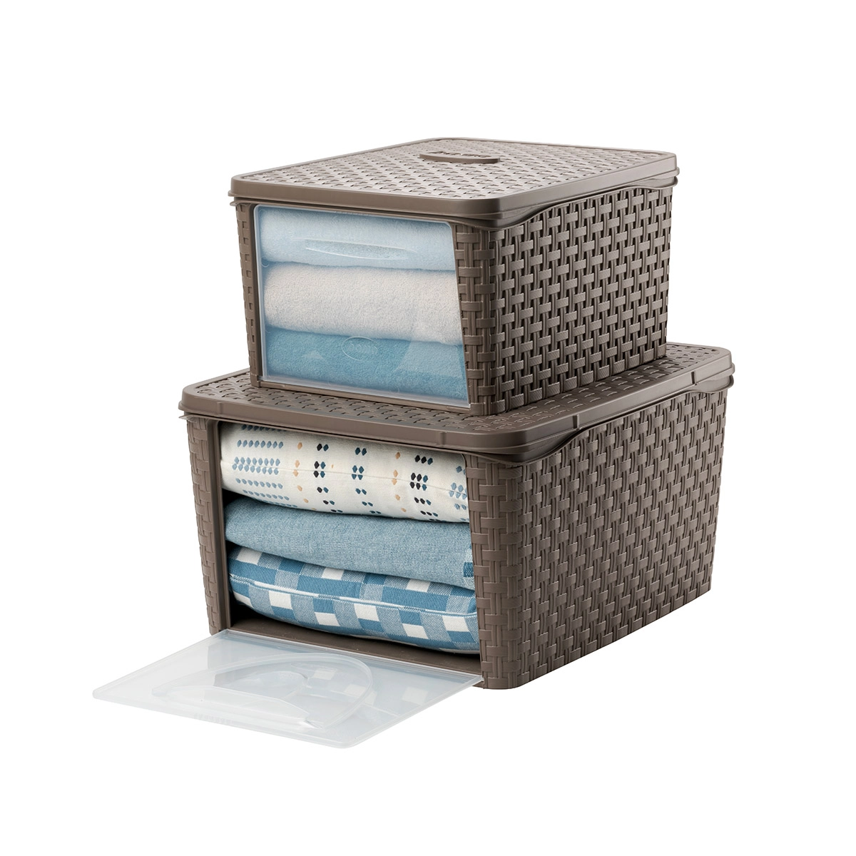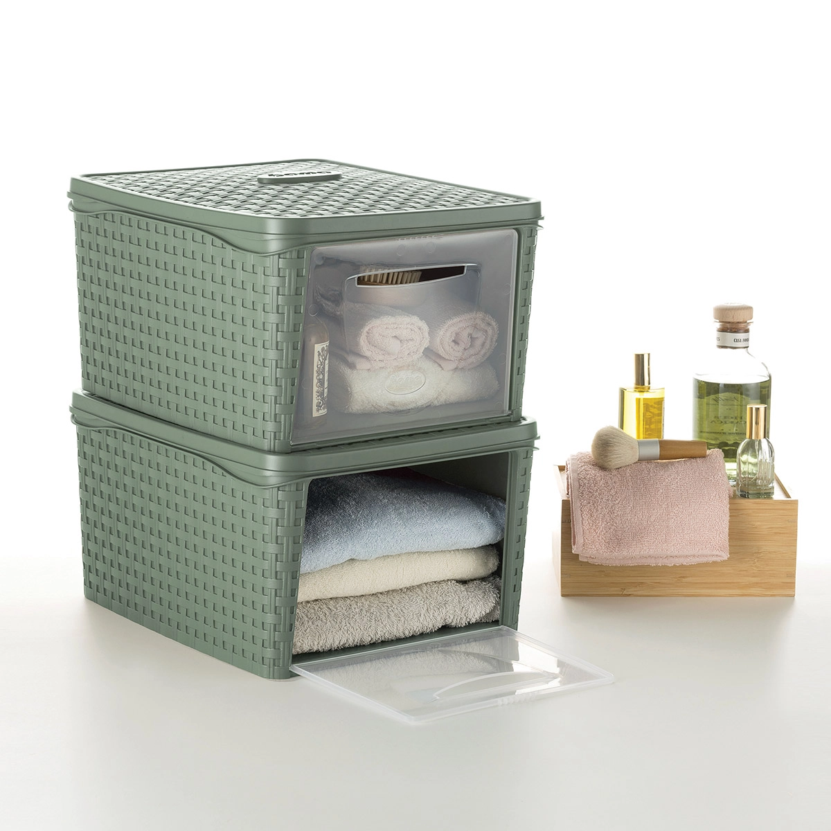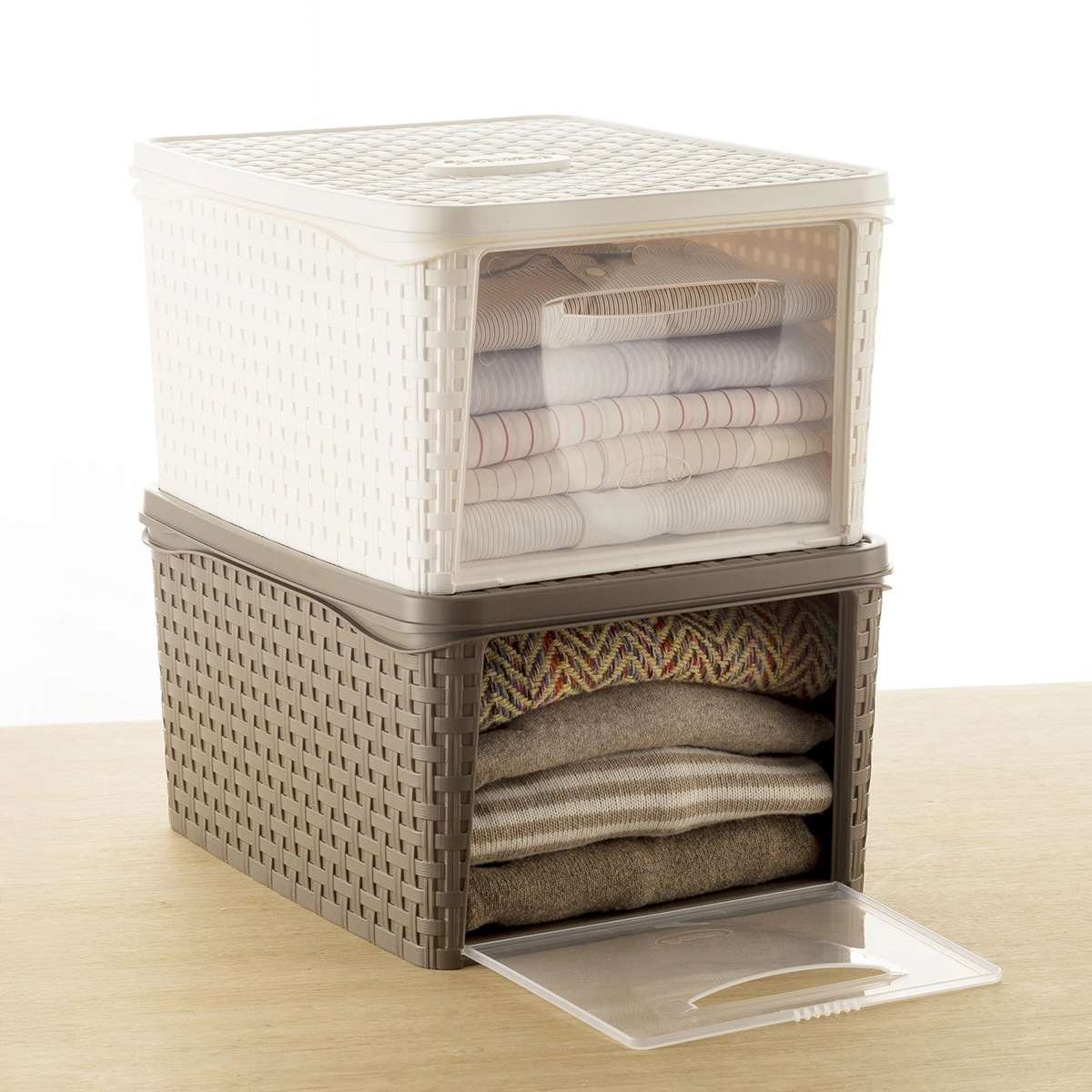 Contenitore armadio modulare in plastica con apertura frontale per inserire ed estrarre gli oggetti con facilità. Indispensabile a ogni cambio di stagione!