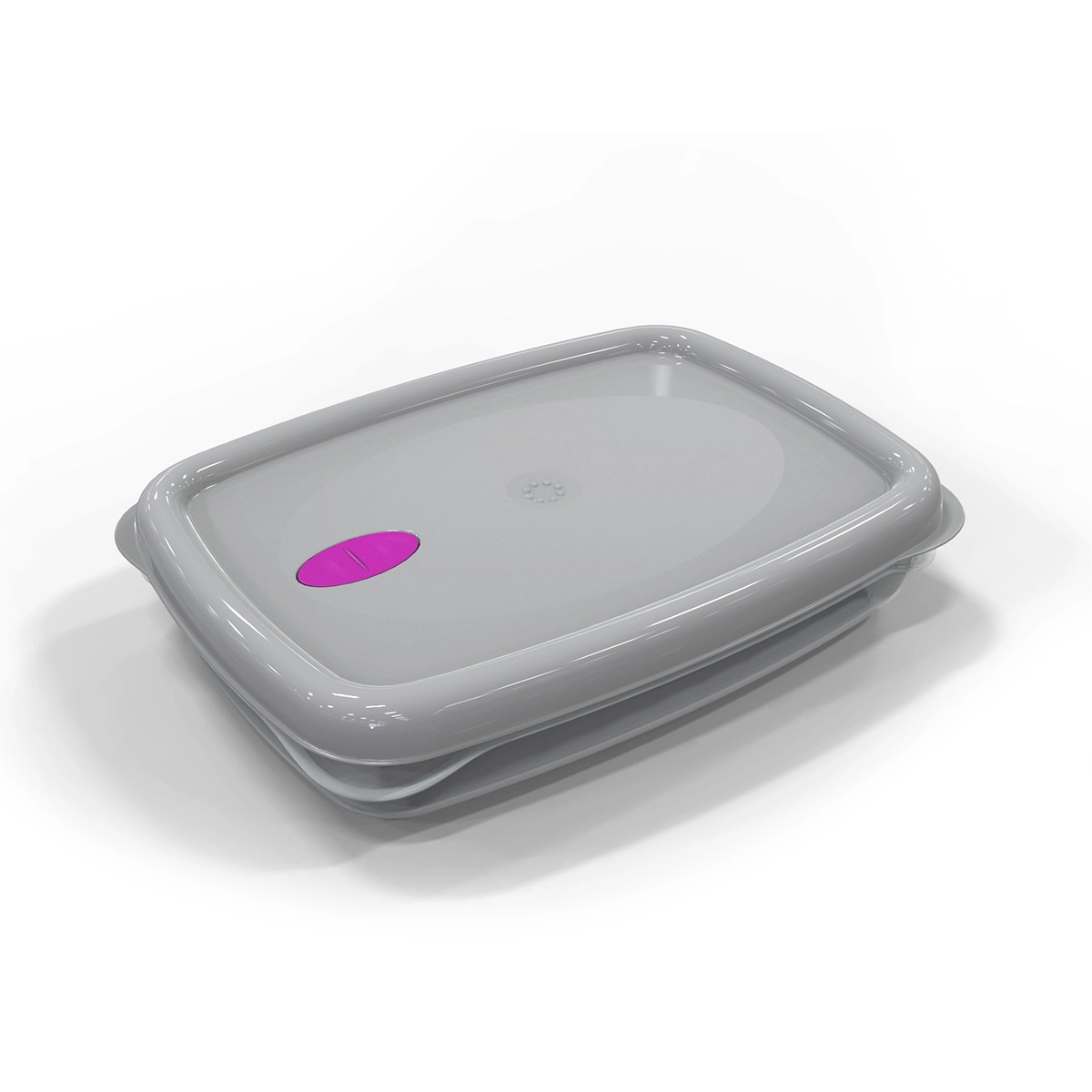 Il coperchio ermetico con valvola di sfiato elimina l’aria e protegge il contenuto alla perfezione. Al tempo stesso, permette di riscaldare i cibi nel microonde con il programma dedicato senza aprire il contenitore. Non usare la funzione grill.