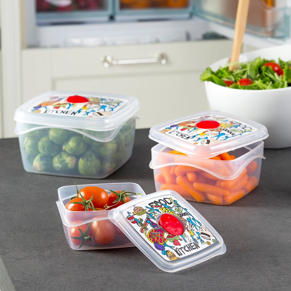 Grazie alla valvola di sfiato permette di conservare al meglio i cibi e di riscaldarli al microonde, senza togliere il coperchio. Non usare la funzione grill. Grazie alla sua funzionalità e al suo stile, porta ordine e un tocco di giocosità in frigo, nel freezer e nella dispensa.
