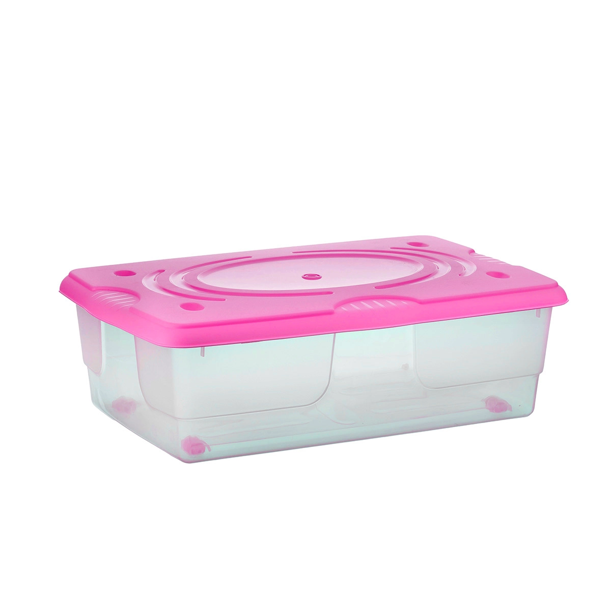La trasparenza del contenitore permette di identificare immediatamente cosa c’è all’interno. Il sistema di apertura garantisce di accedere subito agli oggetti riposti.