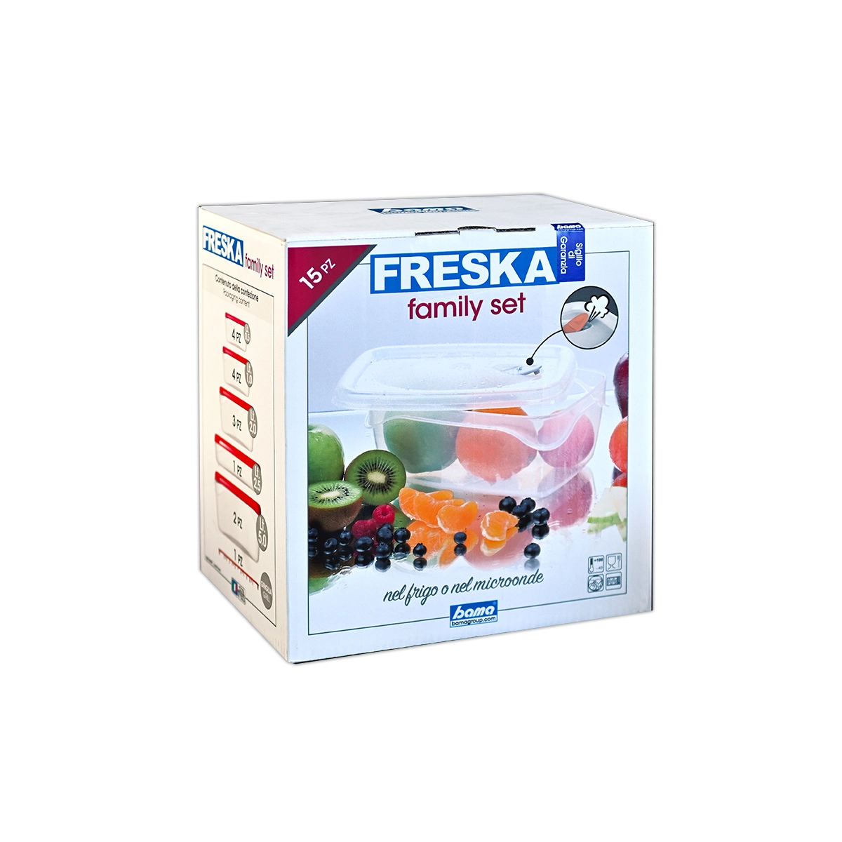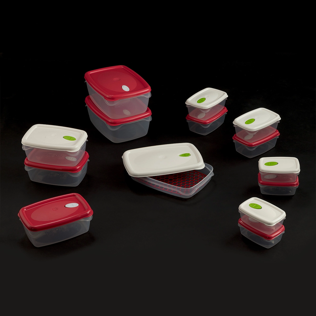 La diversa capacità di questi 15 contenitori in plastica alimentari è studiata per rispettare le esigenze quotidiane di tutta la famiglia: da chi ama le monoporzioni, a chi vuole fare scorta.