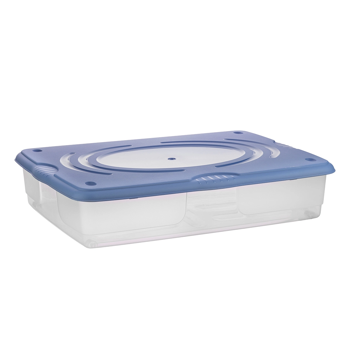 Contenitori in plastica sovrapponibili da 60 lt con apertura a cerniera e chiusura a scatto. Particolarmente indicati per riporre sotto il letto oggetti, indumenti, giochi e biancheria.