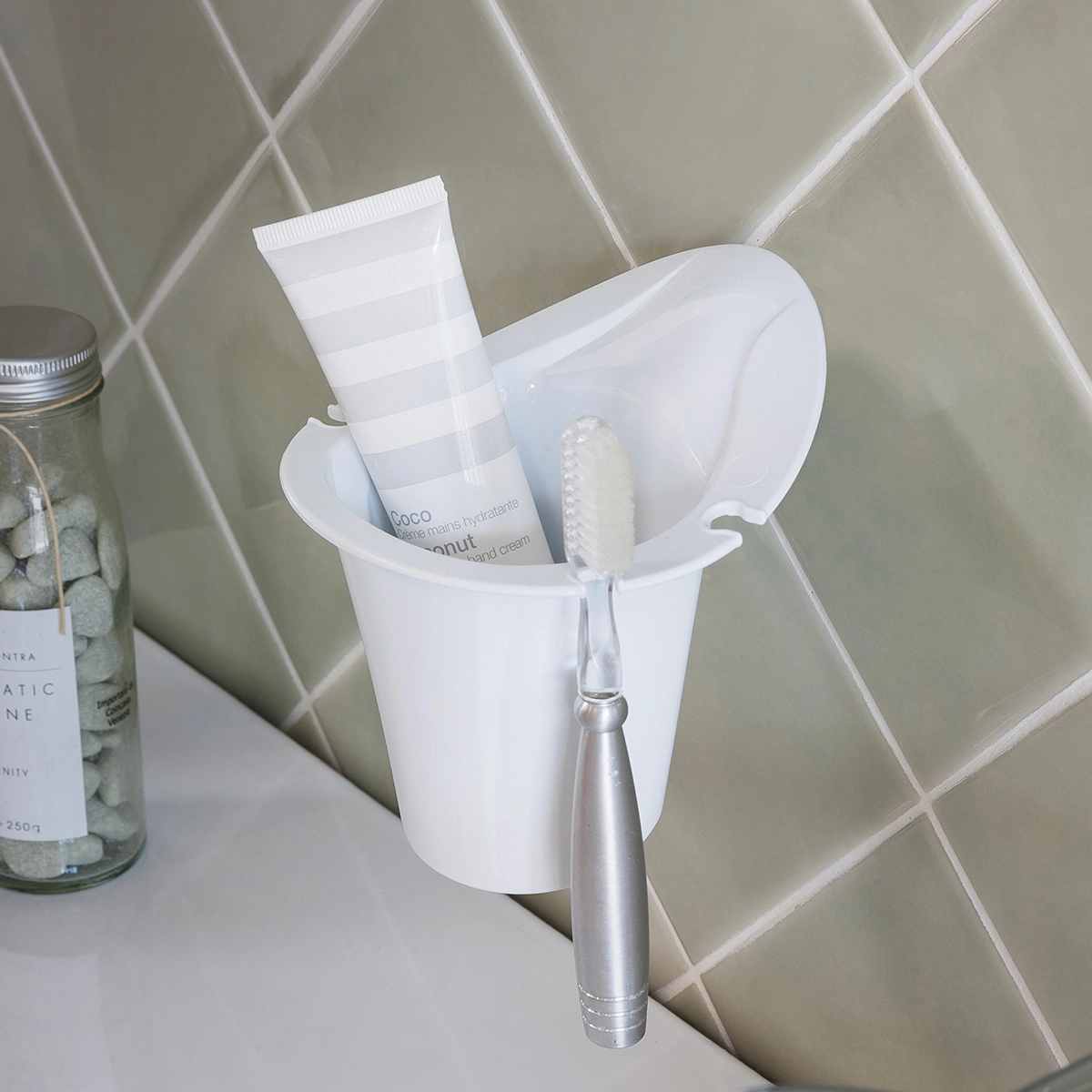 Bicchiere portaspazzolini da muro in policarbonato lucido con sistema di fissaggio a viti.