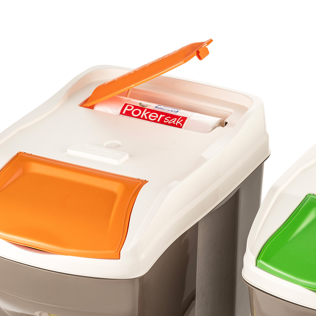 I bidoni per la raccolta differenziata Poker plus offrono ancor più capacità con 7 litri extra per ciascun contenitore. Ideali per umido, carta, plastica, vetro, sono modulabili e sovrapponibili in base alle necessità.