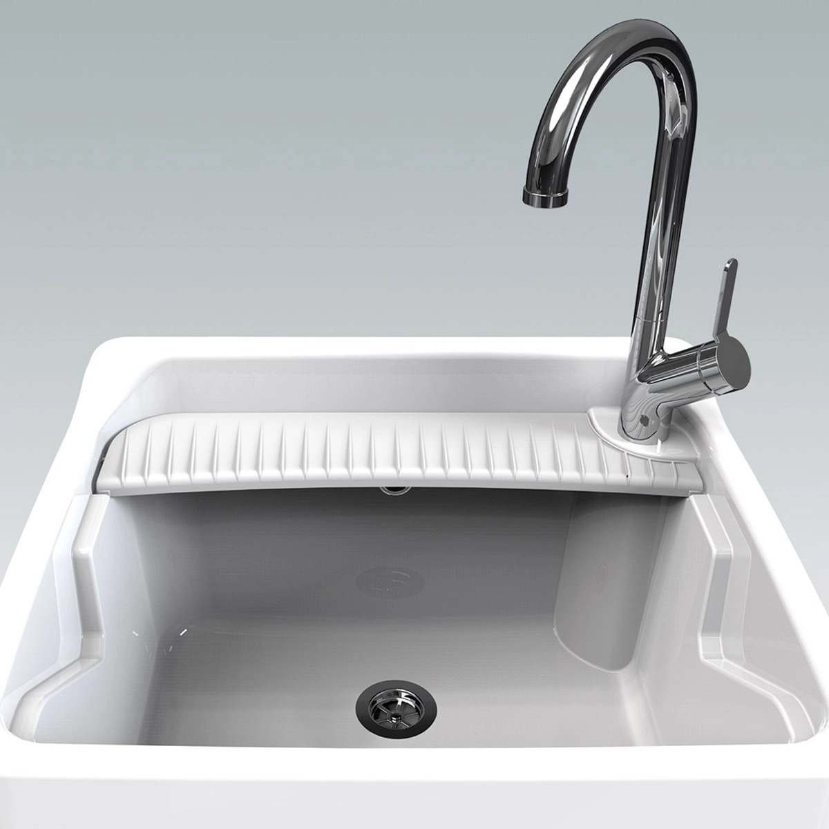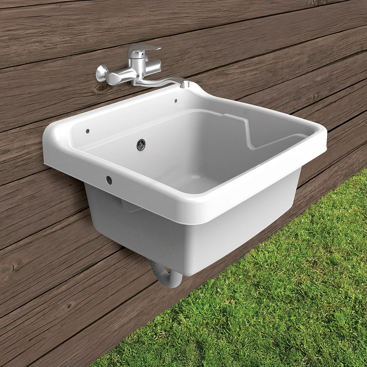 Robusto e pratico, è fornito di tutto il necessario: kit sifone, distanziale, mensola portasapone e asse lavapanni regolabile fino a formare un piano di lavoro. È facile da installare e rappresenta la soluzione ideale in casa o all’esterno
