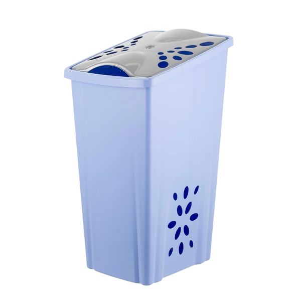 Portabiancheria moderno con coperchio e fessure di ventilazione.