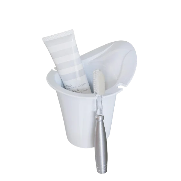 Bicchiere portaspazzolini da muro in policarbonato lucido con sistema di fissaggio a viti: resistente e dal design sobrio, per un bagno sempre organizzato.
