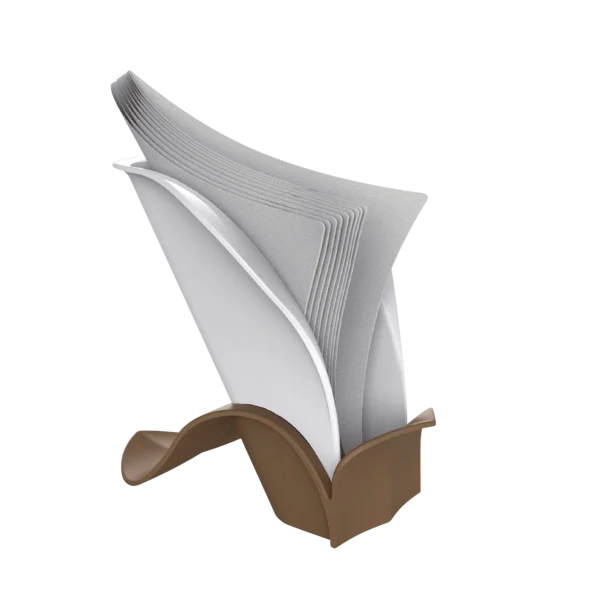 La base lineare ma sinuosa, garantisce stabilità e riduce al minimo l’ingombro. Lo scomparto inclinato per i tovaglioli di carta permette di lasciarli sempre a disposizione e in ordine.