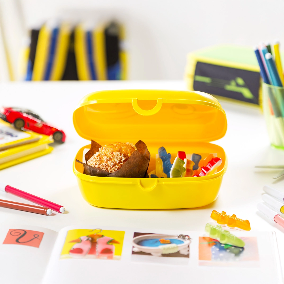 Il porta merende Humor è un box apri e chiudi pensato per contenere snack, frutta e bevande.