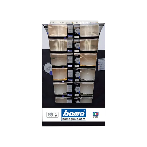 Espositore in cartone formato midi per 20 portatorte in plastica progettato con l’obiettivo di catturare l’attenzione in ogni punto vendita.