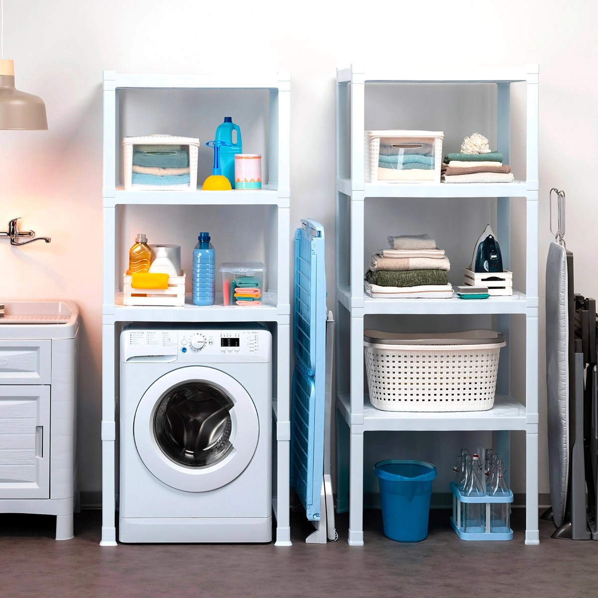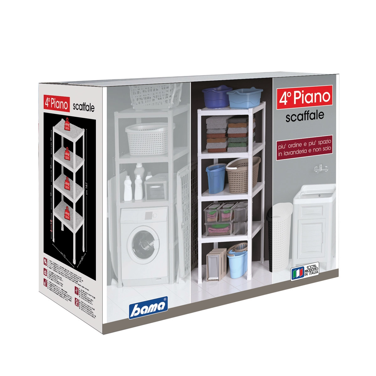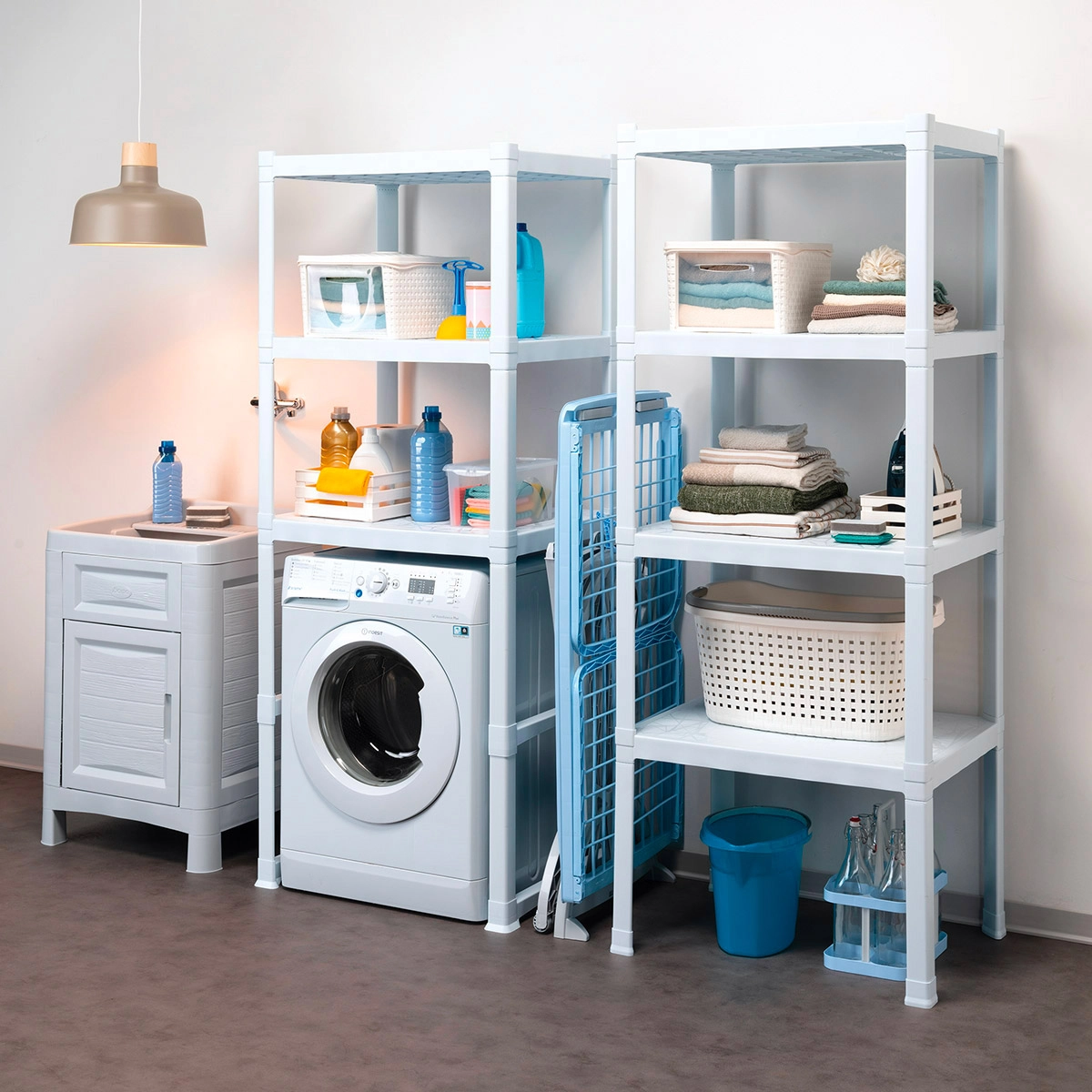 Scaffale lavatrice salvaspazio con 3 ripiani dalla portata di 60 kg l’uno.