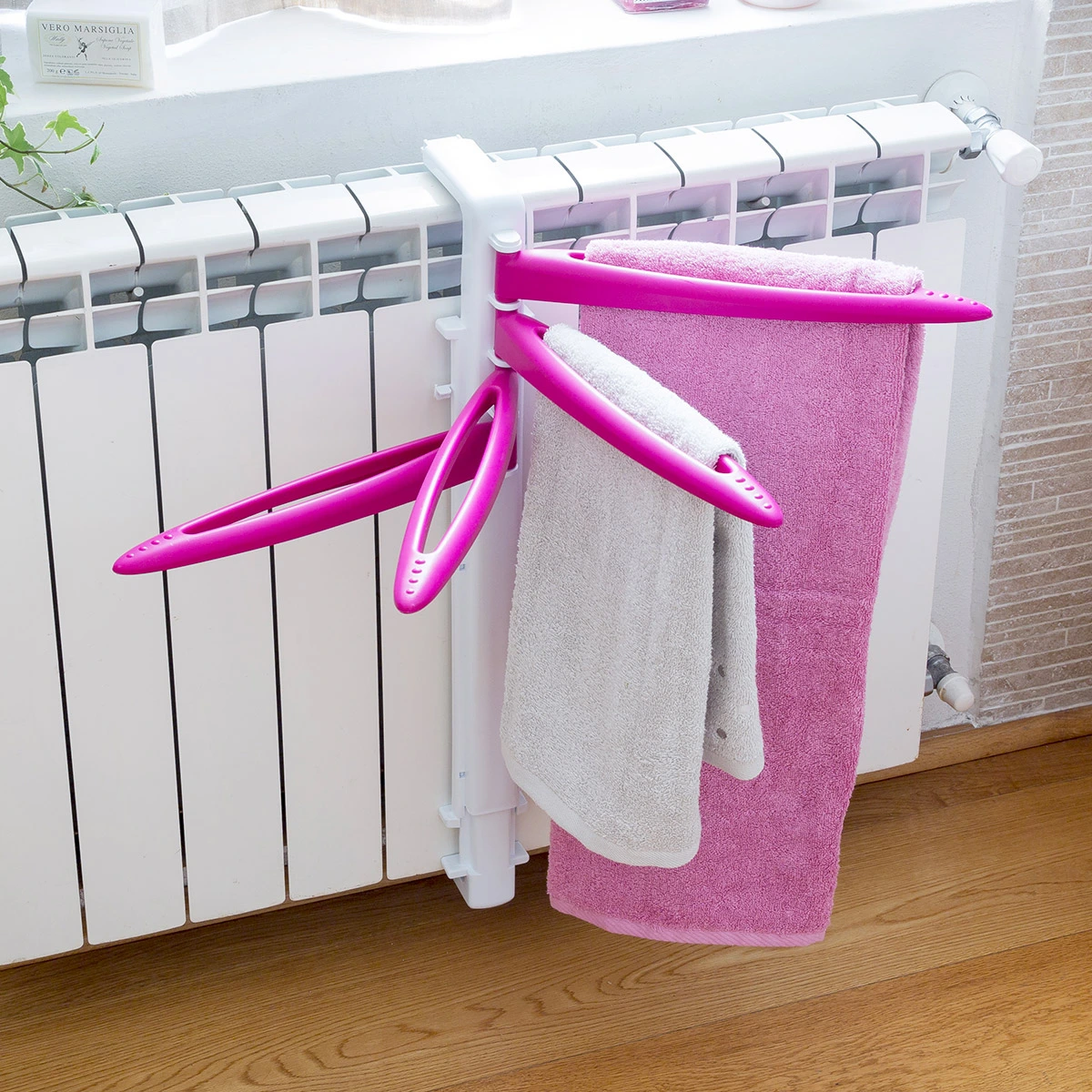 Stendino per termosifone con sistema di regolazione per adattarsi a qualsiasi calorifero.